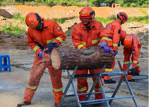 比赛现场,三江县代表队队员精神抖擞、沉着应战:火场侦查科目,队员熟练操控无人机,精准传回侦察数据;风力灭火机协作科目,队员们迅速完成设备检查与启动,默契配合精准作业;在油锯组装与切割科目,队员们动作娴熟、分工明确,快速完成设备组装并精准切割目标;接力水泵远距离输水科目中,队员们高效配合,确保水流快速稳定输送;3公里负重越野科目,队员们克服高消耗体能考验,争分夺秒,保持昂扬斗志冲向终点,每一个科目都展现出扎实的训练成果,赢得现场评委与对手的一致认可。