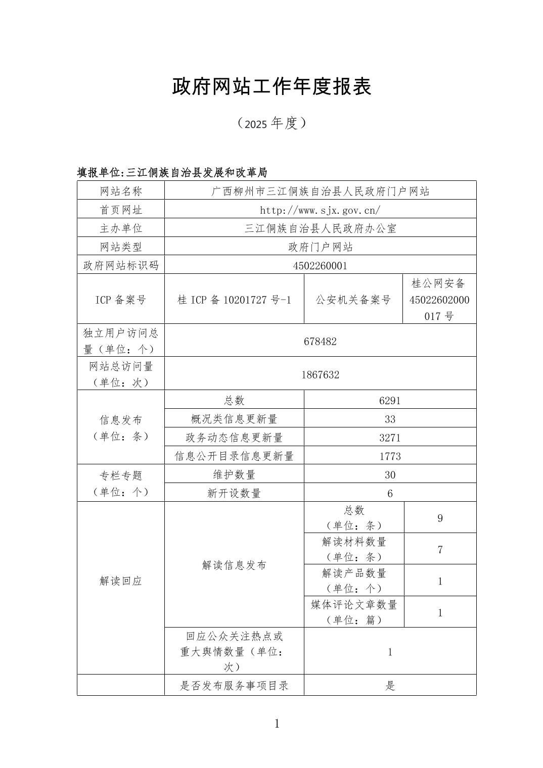 2025年三江侗族自治县人民政府网站年度报表