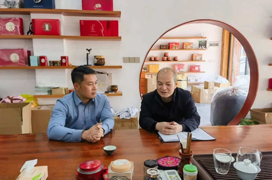 2023年3月7日,吴宏邈院长在三江县仙池茶叶有限公司,征求企业负责人、柳州市茶叶协会会长张国富意见建议。