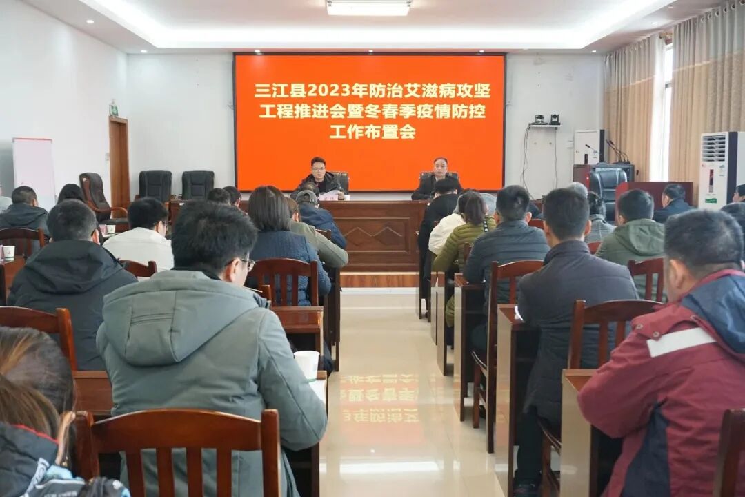 会议简单回顾2022年三江县防治艾滋病工作取得的成效,通报2023全县防治艾滋病攻坚工程进展情况及存在的问题。2022年,在县委、县政府的正确领导下,全县各级防艾委成员单位、各乡镇的团结协作共同努力下,三江县获得自治区2022年度防治艾滋病攻坚工程考核评估以奖代补综合评定三等奖。今年以来,全县防治艾滋病攻坚工作有序开展,传染病防控工作卓有成效,全年无重大公共卫生事件发生。