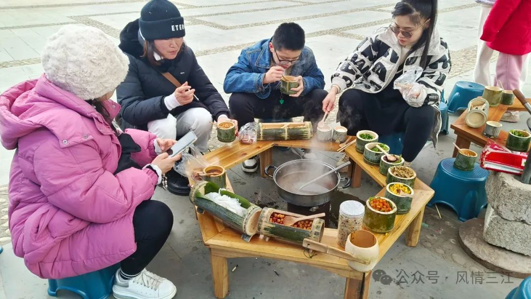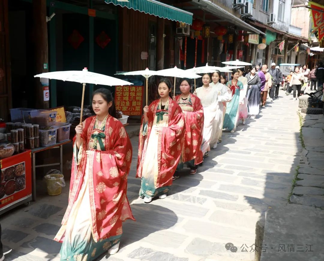 4月1日,三江侗族自治县丹洲景区举行码头迎宾、县令巡城、打油茶、科举考试等丰富多彩的活动,尽展古城文化魅力,吸引大批游客前往游玩体验,欢度广西三月三假期。