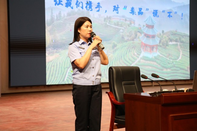 禁毒事务中心通过“防范青少年药物滥用”禁毒知识讲座、发放禁毒宣传手册、播放禁毒宣传视频、展示毒品仿真模型、进行禁毒知识问答互动等方式开展活动。针对青少年好奇心强、辨别能力弱、容易受到诱惑等特点,结合当前毒品发展的新形势,重点讲解了“*********”、“上头电子烟”和“芬太尼”等新精神活性物质的成瘾机制和严重后果,提醒青少年在日常生活中要保持警惕,不要接受陌生人提供的来路不明的物品,尤其是各类看似普通的电子设备和药品。