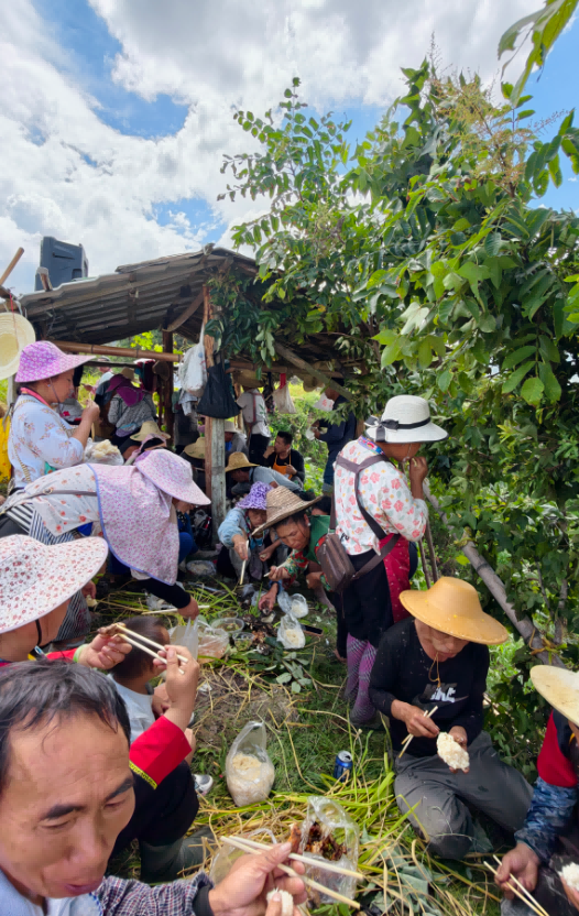 劳动间隙,大家就在田埂上或农户家的院子里一起吃大锅饭。没有特殊的招待,只有农家最朴实的饭菜。工作组队员和村民们围坐在一起,一边吃饭,一边聊收成、话家常。汗水与笑容交织,疲惫与喜悦共存,彼此之间的距离在这一刻消弭殆尽。
