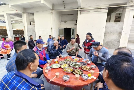 活动现场气氛温馨,老人们欢聚一堂,畅聊家常,共唱侗族大歌,用歌声表达对党和美好生活的感恩。驻村工作人员与业委会成员为70岁以上老人发放纪念品,传递诚挚问候与祝福。活动最后,全体人员合影留念,记录下这温暖时刻。