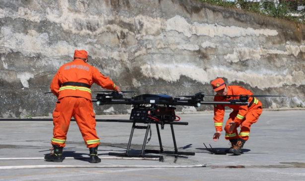 何国烜一行首先来到三江县云上侗乡低空经济有限责任公司,调研无人机在森林防火巡查、火情监测等方面的核心作用。随后,前往县专业森林消防大队,现场观摩了火场侦察及“以水灭火”等实战演练,并重点了解了无人机在复杂地形下实现快速响应与精准扑救的技术能力。何国烜指出,要充分发挥低空经济在应急救援领域的场景优势,推动无人机技术从“可用”向“好用、管用”升级,加快构建“空天地一体化”的森林防火监测调度体系。