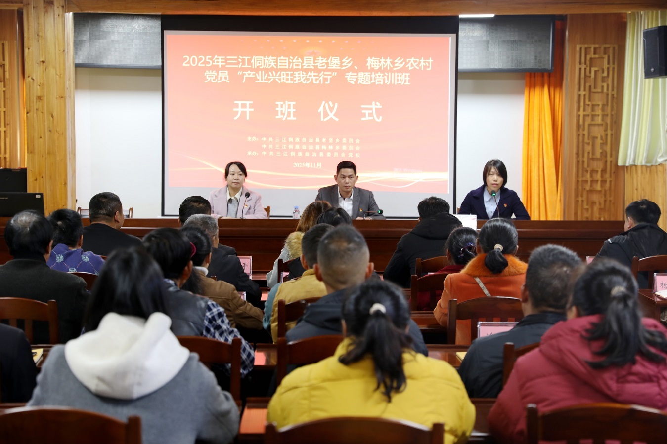 2025年11月26日,老堡乡与梅林乡联合举办的“农村党员进党校”培训班顺利开班,两乡侗族党员齐聚一堂“充电赋能”。梅林乡党委书记、组织委员出席开班仪式。