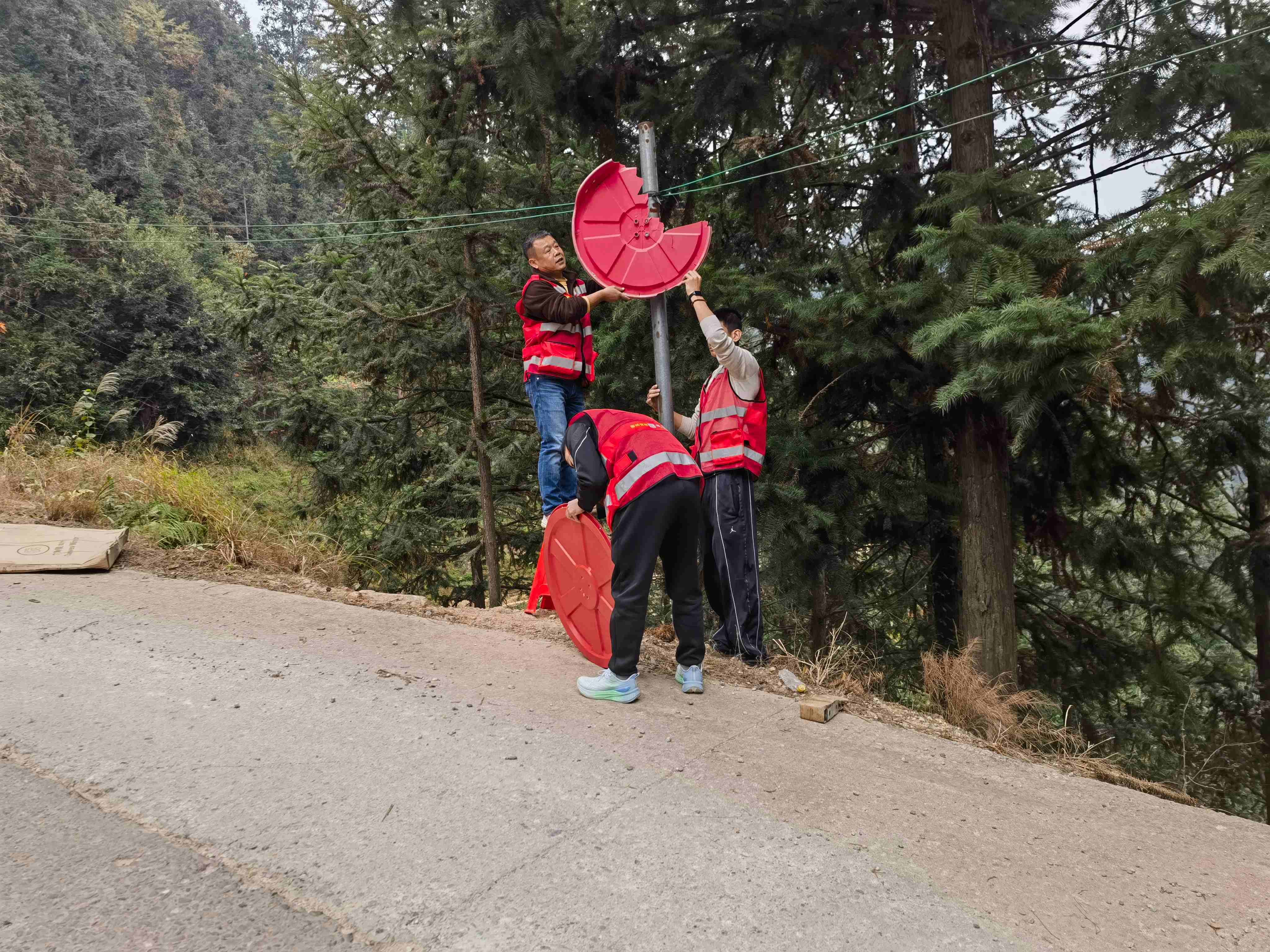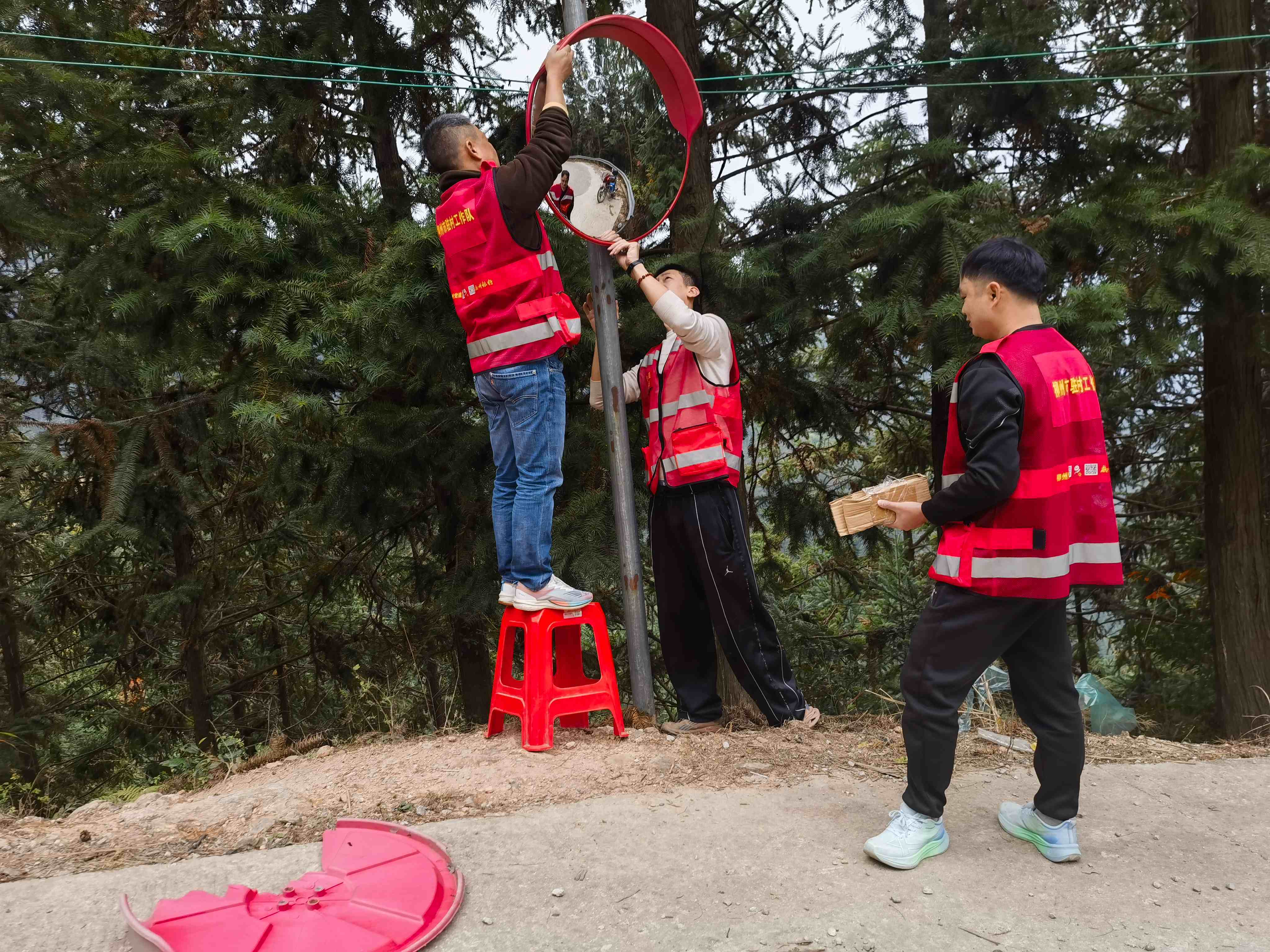 针对这一情况,驻村工作队将解决这一安全隐患列为近期“为民办实事”的重点任务。他们组织人员对全村主要通行道路,特别是事故易发、视线不良的弯道、岔路口进行了细致排查,摸清了需修复和增设广角镜的具体点位。随后,工作队迅速协调资源,找来符合安全标准的广角镜及配套器材,携带工具,开展安装作业。他们仔细勘察选点,确保镜面角度能最大范围覆盖盲区;牢固安装支架,保证镜体在山区多变天气下的稳定性。经过集中努力,一批崭新的广角镜在关键位置“上岗”,旧损镜面也得到了及时更换。