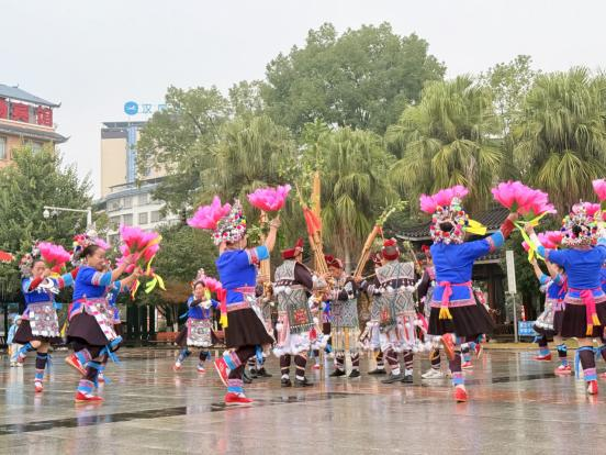 为让活动更贴合侗乡群众生活习惯,主办方在场景布置与服务细节上融入满满侗族特色。多耶广场内,印有鼓楼、风雨桥图案的宣传展板整齐排列,侗锦纹样的指引标识清晰明了,工作人员身着点缀侗绣元素的服装,用亲切的侗汉双语接待每一位群众,让群众在熟悉的文化氛围中舒心办事、轻松学政策,有效拉近了与群众的距离。