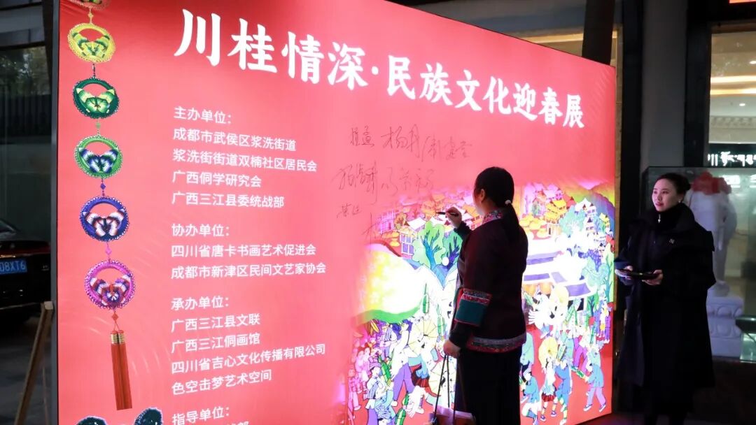 1月1日,由广西侗学研究会、成都市武侯区委统战部、柳州市三江侗族自治县委统战部联合主办的“以画传情促同心·新生活·新风尚·新年画——2026年川桂民族文化交流迎新展”在四川省成都市武侯区开幕,通过展览交流、学术座谈、研学体验等形式,全面展现三江农民画的独特魅力,助力川桂两地文化互鉴与民族团结进步。