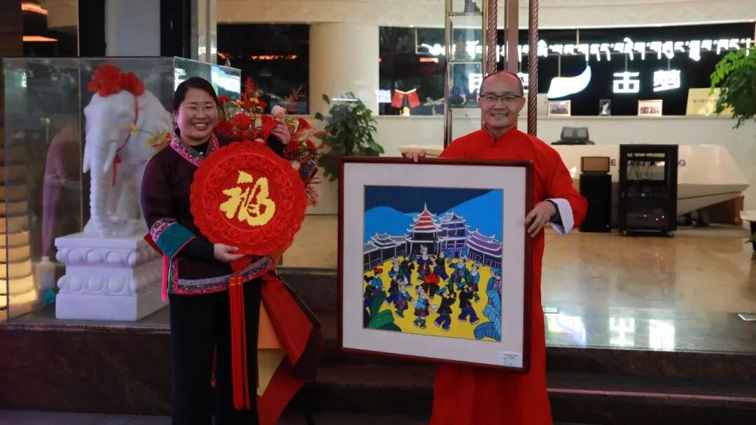 座谈会上,与会人员围绕文化推广、产业创新与文旅融合等议题展开深入交流。西南科技大学法学院教授冉华庆指出,非遗创新应侧重于表达方式与传播路径的现代化,善用数字化、IP化、场景化等手段,让传统技艺融入当代生活,实现文化价值与经济价值的统一。西藏黄河诗书画院院长卫建堂表示,该院长期以诗书画为纽带促进民族文化交流,本次参展既是艺术对话,也是民族团结的生动实践。广西侗学研究会副会长兼秘书长谢兴华认为,展览生动体现“各美其美、美美与共”的文化交融图景,是川、桂、藏多地文化互鉴的鲜活案例。