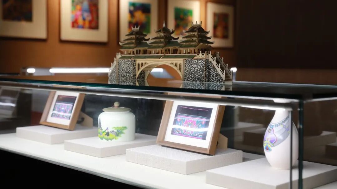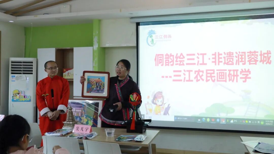 开幕式上,自治区乡村工匠名师、三江农民画市级代表性传承人、三江侗族自治县侗画文化有限公司董事长吴凡宇致辞,两地非遗传承人互赠艺术作品。展厅内集中呈现60余幅描绘侗乡风土人情的三江农民画及500余件侗族刺绣、银饰等非遗文创产品,生动展现侗族深厚的文化底蕴。