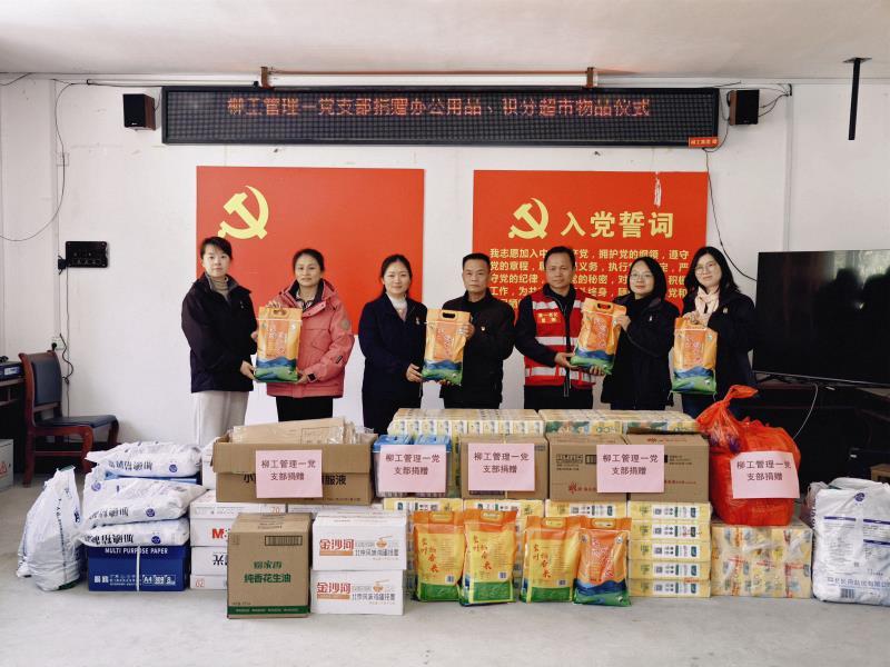 在村部会议室,党支部一行与村两委干部、驻村工作队进行了座谈。双方围绕百香果、罗汉果、油茶、中蜂养殖等特色产业发展,以及基层党组织建设等主题展开深入交流。柳工管理一党支部详细了解了思欧村在产业发展中遇到的实际困难和下一步规划,并表示将充分发挥自身优势,持续提供支持。随后,党支部向思欧村捐赠了办公用品及积分超市物资,涵盖了米、面、油、纸巾等生活用品,以实际行动支持村级组织建设和乡风文明建设。