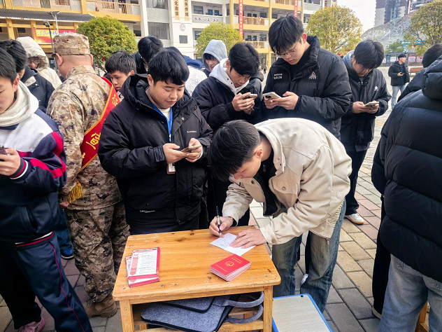 活动现场,工作人员通过设立咨询台、悬挂宣传标语、摆放宣传展板、发放征兵宣传手册等多种形式,向学生们详细介绍了2026年征兵工作的流程、条件、报名方式及相关优待政策。重点围绕青年学生关心的入伍条件、部队发展、学业优待、经济补助、退役安置等方面进行了耐心细致的解读,特别是针对大学生入伍的专项优惠政策进行了重点宣讲,点燃莘莘学子从军报国热情,鼓励适龄青年踊跃登记应征,携笔从戎。