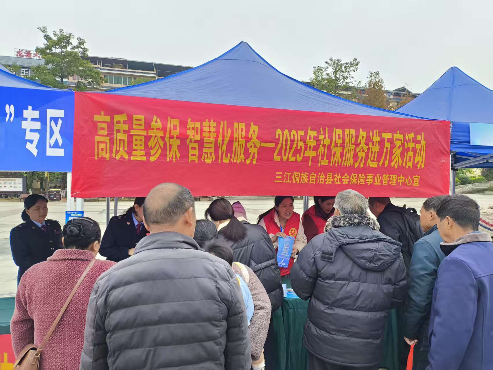 做好普及宣传,扩大“知晓度”。三江人社部门积极组织力量集中开展城乡社保政策掌握及业务经办规程培训,持续做好“练兵比武强技能”和“业务技能讲座”活动,加强镇村干部和信息员培训,提高其业务素质和经办能力。同时通过电视专栏、微信公众号、现场会散发传单、入户走访等多种形式大力宣传,并结合侗族民族特色编制琵琶歌,以琵琶弹唱宣传社保政策的形式录制视频,充分利用县融媒体及各乡镇村屯群进行转发宣传。还组织工作人员深入社区、农村、企业等一线,以“送服务上门”的方式,加强养老保险政策宣传,并确保群众咨询做到“有问必答、有惑必解”,提高广大群众对养老参保意识和参保积极主动性。截至2025年12月底,共开展政策宣传活动27次,业务素质培训26次。
