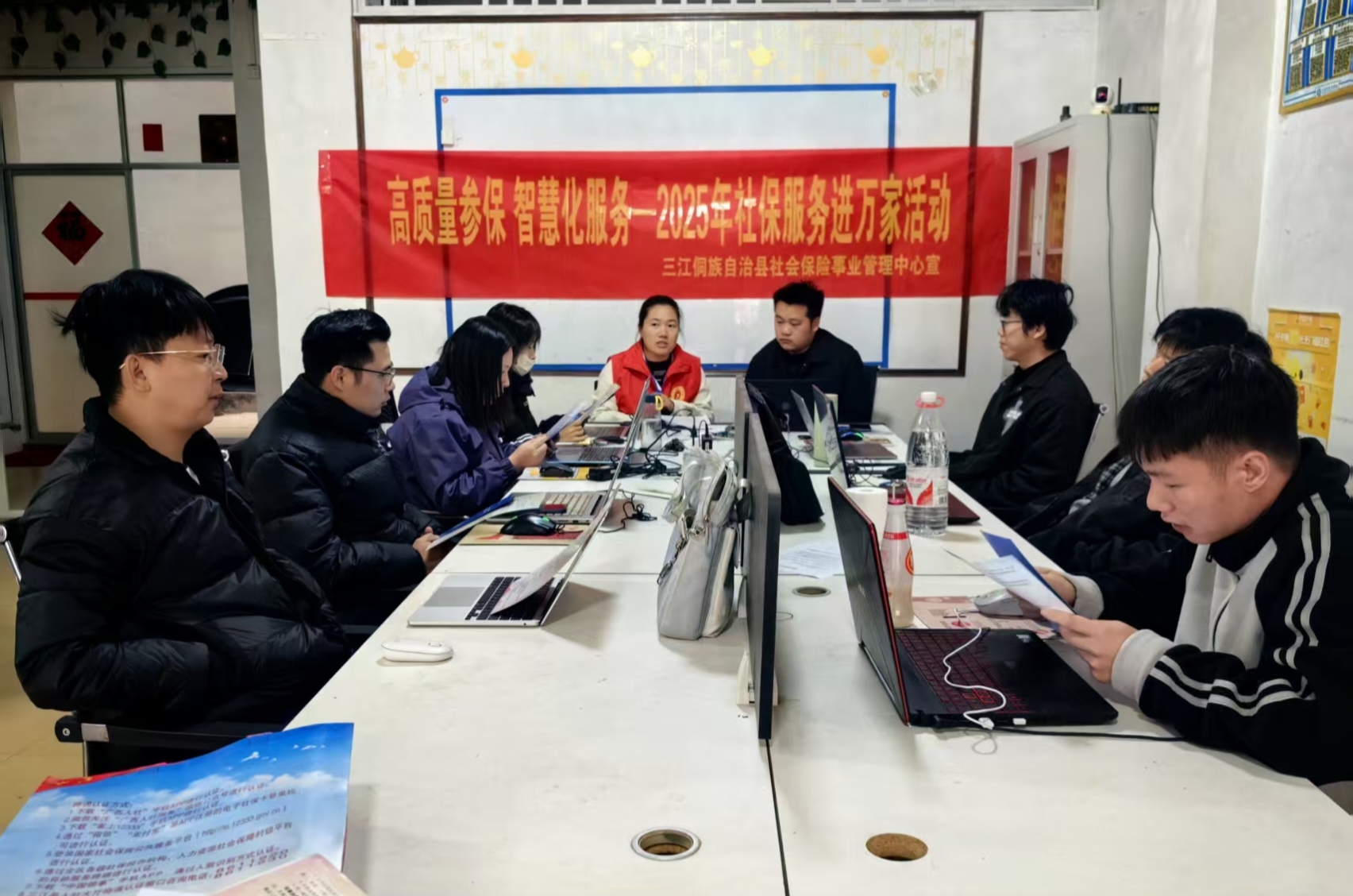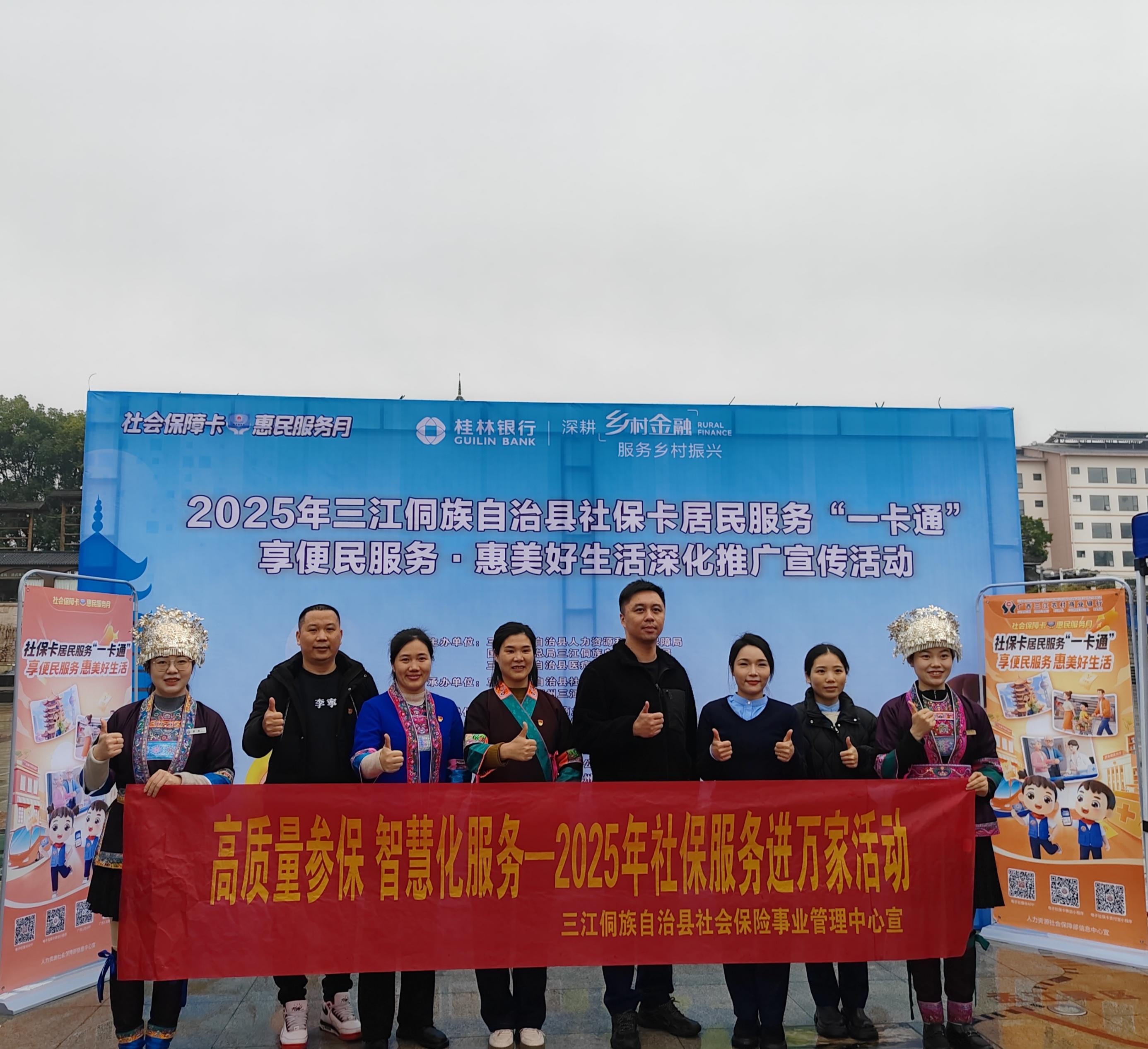 用好社银合作,汇聚“联动力”。为了进一步拓展社保工作面,三江注重开展好“社银合作”,组织农业银行、农商行、桂林银行三江支行等8家金融机构,召开社保卡服务全流程监管专题会议,构建“制发—管理—应用”全链条服务体系,明确目标任务与业务流程,并以“社银合作突击月”为载体,发挥基层网络优势,深入乡镇村户,为群众上门办理第三代社保卡,实现“办卡零跑腿”,打造群众身边的“幸福卡”“放心卡”,有效解决偏远地区和特殊群体办卡难题,推动社保卡服务提质增效,自去年1月份以来,各合作银行累计开展上门服务800余场次,真正打通了服务群众的“最后一公里”,实现“申领无忧、用卡无碍”。通过“人社—乡镇—银行”三级联动模式,目前全县社保卡持卡人数达32.85万人,电子社保卡申领人数达24.72万人,电子社保卡人口覆盖率达75%以上。