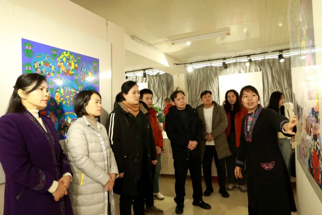 2月2日,“美育润心・画说新春”三江农民画夜校研修成果展在三江侗族自治县文化馆三楼展厅开展,副县长吴明焕参加活动。