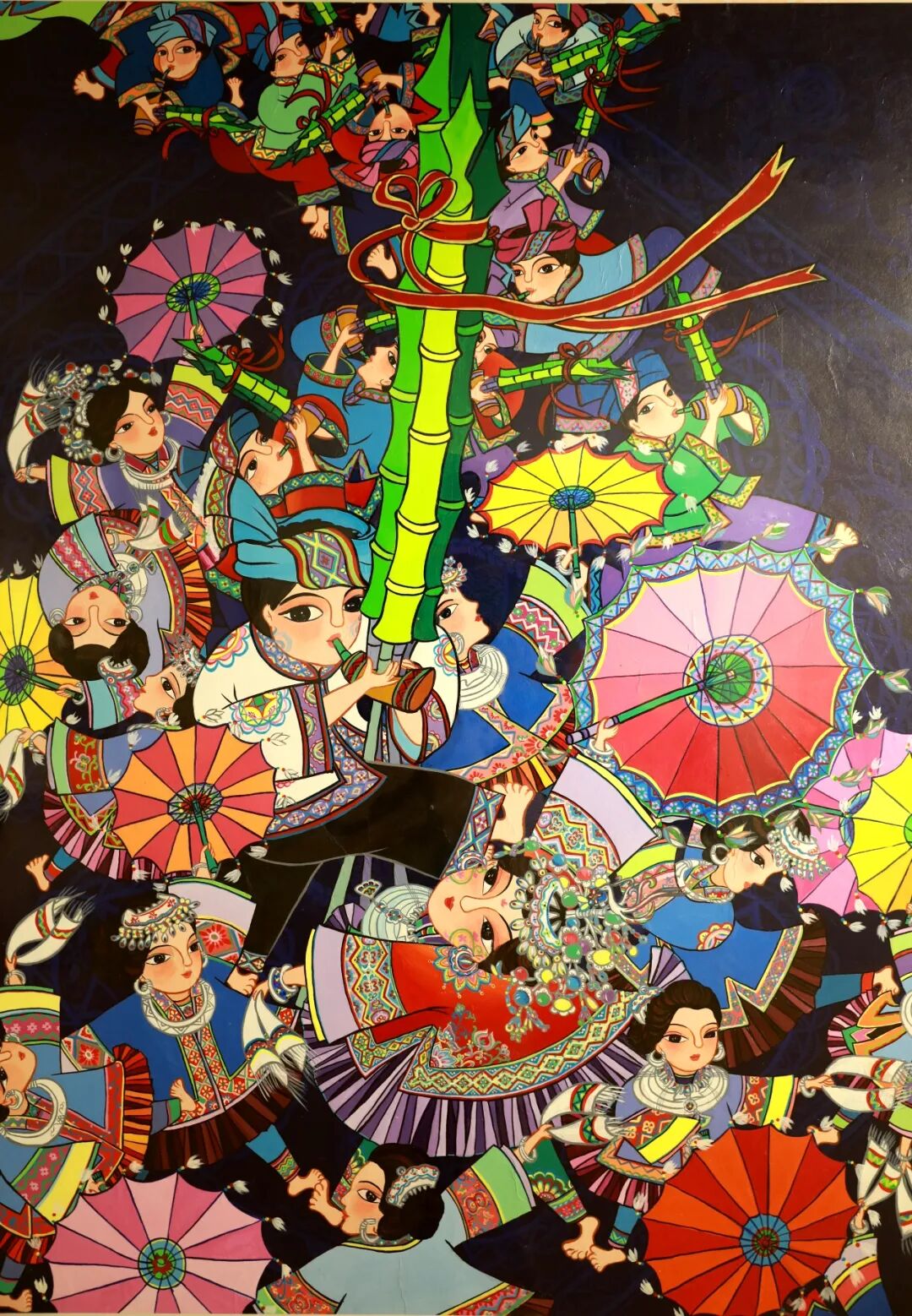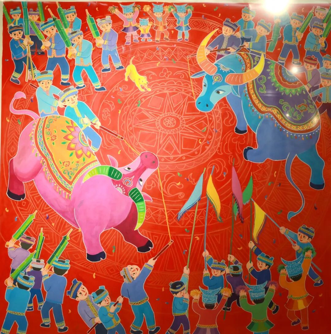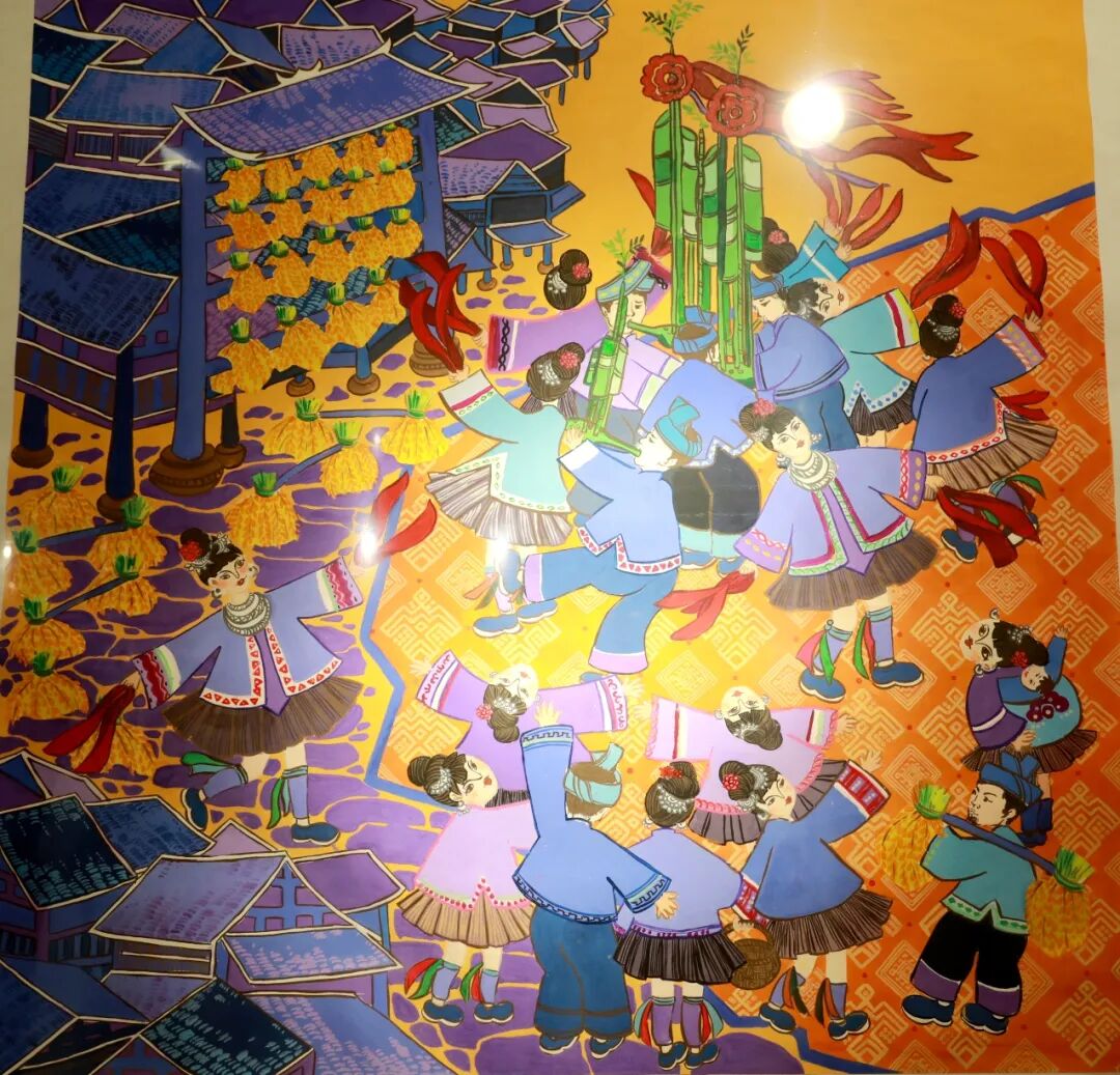 本次展览由柳州市群众艺术馆与县文体广旅局联合主办、县文化馆承办,展期自2月2日起至3月30日,集中呈现30余幅农民画作品。所有作品均出自“家门口的美育加油站·星夜艺学堂”研修班学员之手,学员涵盖教师、医护人员、机关职工、非遗传承人及群众代表。他们从基础笔法入手,深入研习创作,以饱满色彩与生动笔触,描绘侗寨节庆、农耕场景与日常生活,充分展现侗乡风情与非遗魅力。