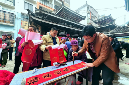 红纸翻飞,墨香沁人;鼓楼巍然,歌声悠扬。2月3日中午,广西三江侗族自治县古宜镇南站社区鼓楼前人潮涌动、笑语盈盈——柳州市科协科技社团联合三江县政府在古宜镇南站社区开展“新春送福”文化惠民活动,书写200余副饱含时代温度与民族气韵的春联,亲手递到易地搬迁侗族群众手中。一场跨越山岭的年俗奔赴,在鼓楼飞檐下升腾起暖意融融的新春图景。