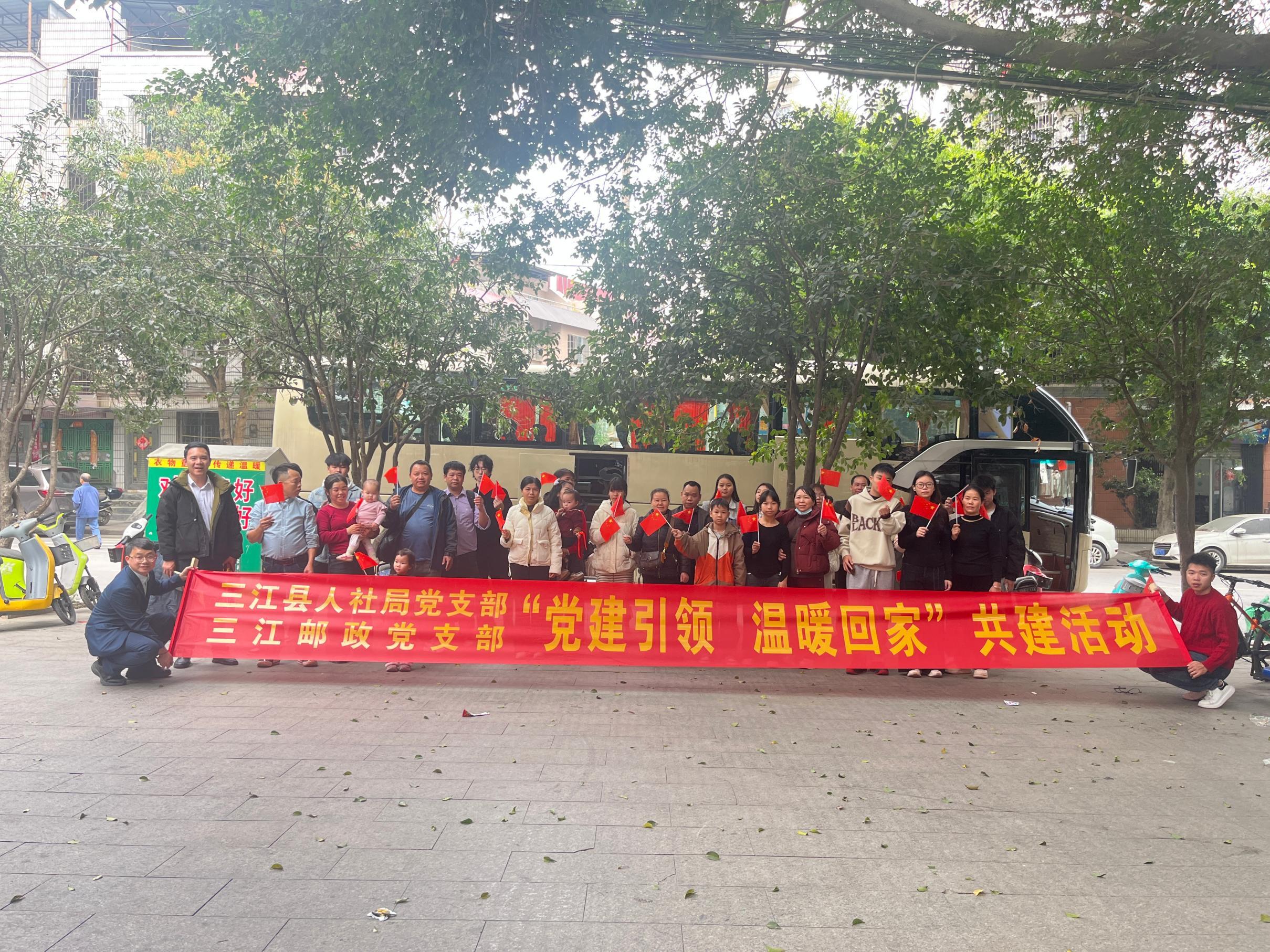 目前,首趟“三江邮政温暖号”免费返乡专车已顺利从梧州接回37名三江籍务工人员。下一步,三江侗族自治县人社局党支部与三江邮政党支部将持续深化党建共建成效,紧盯务工人员返乡高峰,密切关注各务工集中地企业放假时间,持续开展免费返乡专车服务,用实际行动当好务工人员的“娘家人”,切实把党组织的关怀送到群众心坎上,让每一位在外打拼的三江游子都能带着温暖回家、载着期盼团圆,以党建引领绘就民生幸福画卷。