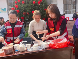 活动现场气氛热烈、其乐融融。拔河比赛中,队员们齐心协力、奋勇争先,呐喊助威声振奋人心,展现出坚韧不拔、团结协作的精神;蒙眼敲锣趣味十足,选手们蒙眼转体、摸索向前,引得现场欢声笑语不断;两人三足默契配合、步调一致,击鼓抢凳子节奏明快、紧张有趣,运面粉项目细心接力、考验技巧,各项比拼既充满活力,又拉近了邻里距离。作为本次活动的特色亮点,包饺子比赛让大家在巧手比拼中尽显生活智慧。参赛妇女动作娴熟、各展所长,包馅、捏褶一气呵成,一个个造型美观、工整饱满的饺子依次成型。评委从饺子外观、规范程度等方面现场评比,充分展现了社区妇女勤劳能干、心灵手巧的良好风貌。