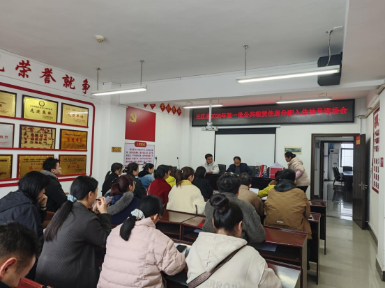 根据三江县公租房管理工作安排,3月26日下午,在县住建局九楼会议室完成了我县2026年第一批公共租赁住房现场抽号分配工作。本次分配的公共租赁住房共24套,其中一房一厅19套,两房一厅5套,分别位于县城福桥西、福学路、富安大道等三处,面积为39至60平方米不等。参加本次抽号分房的家庭均符合公共租赁住房申请条件,并完成“三审两公示”;本次抽号应到家庭代表24人,实到24人。24个家庭代表按签到顺序依次抽取房号,并签订公共租赁住房房号确认书,为24户进城务工人员及新就业人群等中低收入家庭实现住房保障“安居梦”。