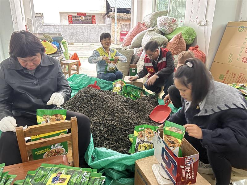 扶平村气候温润、温差适宜,本是木耳生长宝地,却曾长期面临“冬闲田闲置、劳动力赋闲”困境。村“两委”抢抓政策机遇,联合柳工集团注入帮扶资金,升级建设14亩标准化基地,配齐智能喷灌、精细分选等设施,让昔日闲置田蜕变为“致富田”。今年,全村木耳菌棒由5万棒扩至10万棒,鲜耳总产量破10万斤,村集体经济收入预计超15万元。基地推行“党支部 + 后盾单位 + 农户”联农带农模式,固定用工5人,旺季日用工 40 余人,100-120元日薪让村民实现“家门口就业”。“以前冬闲没事干,现在挣钱顾家两不耽误,日子越来越有奔头!”村民笑意盈盈。