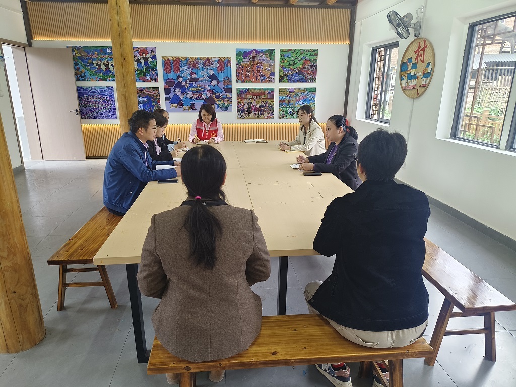 在调研过程中,吴玉珊常委实地考察了基地内的三江农民画“侗兴宝艺”体验工坊、非遗文创直播间以及红色研学室等核心功能区。程村乡乡长李诚向吴玉珊常委介绍,该基地是在粤桂协作资金的大力支持下建成的,目前已成功引进专业团队,将侗画、侗绣等国家级非遗项目与现代电商直播深度融合,打造出了集“创作、研学、销售”于一体的特色产业链。