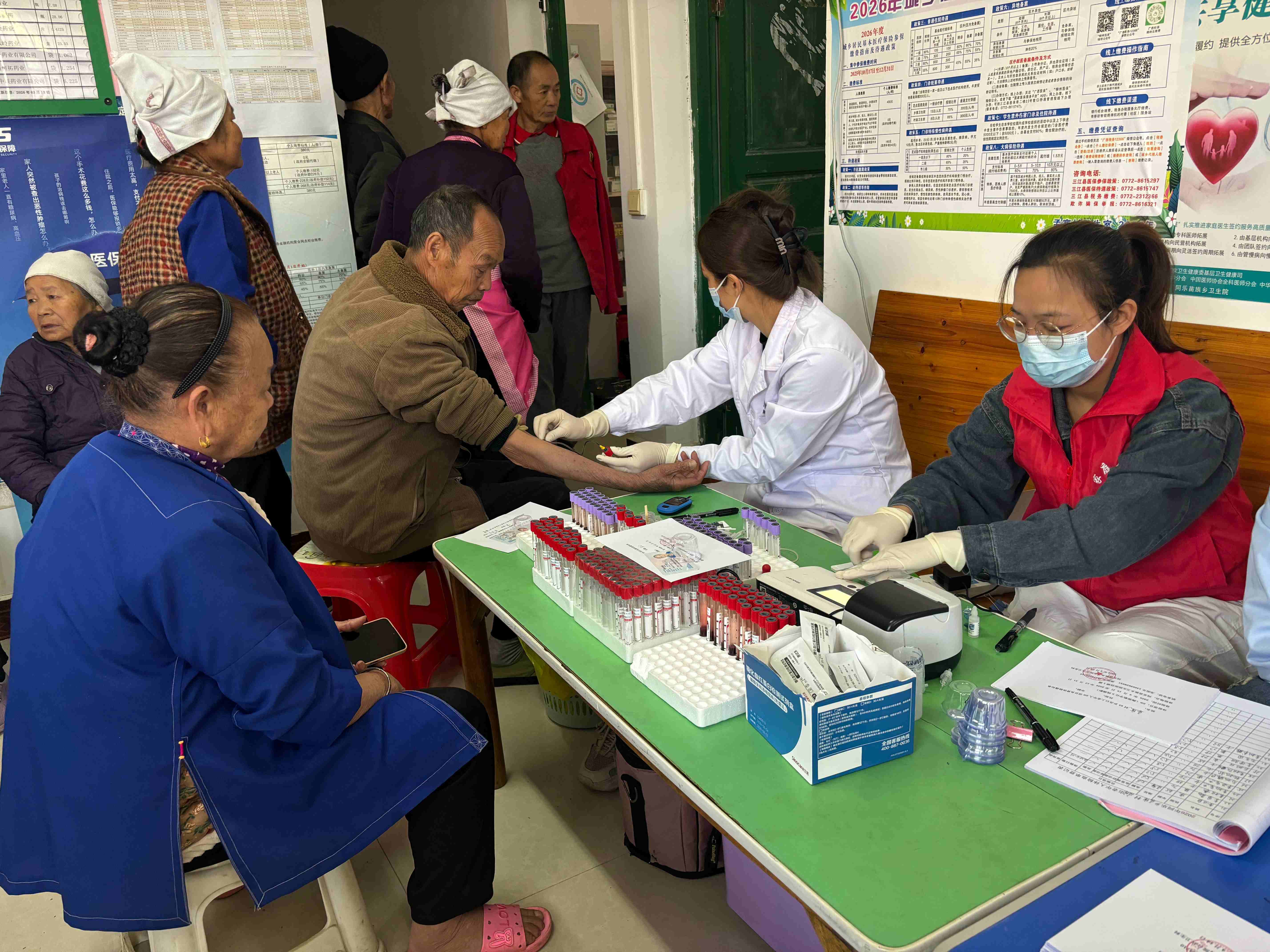 4月23日,三江侗族自治县同乐苗族乡卫生院医疗团队走进孟寨村,在村卫生室为六十五岁以上老年人、慢性病患者及特殊人群开展免费健康体检活动,让老百姓在“家门口”就能享受便民医疗服务,不断强化医疗保障体系建设。