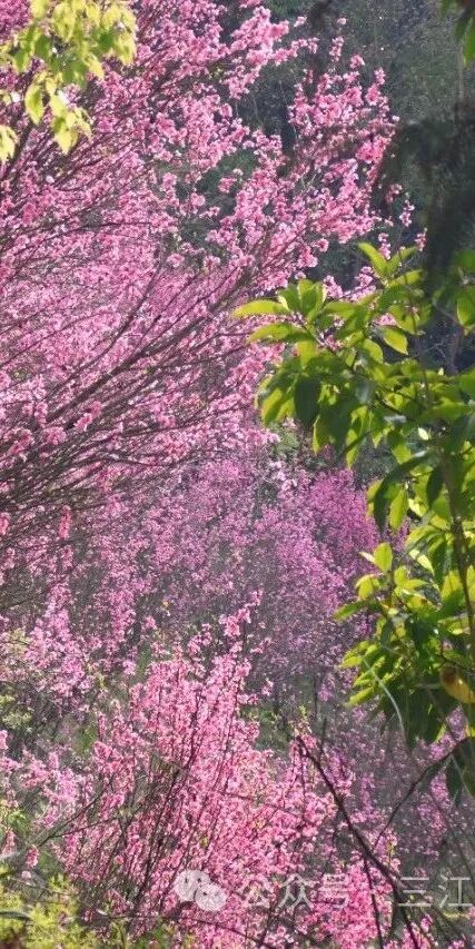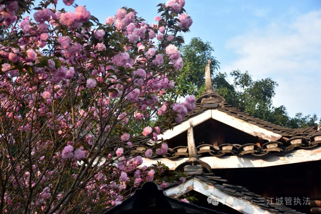 月亮街迎来碧桃和樱花的盛放期,粉雕玉琢的桃花或含苞待放或向阳而生,灿若烟霞,为大侗寨增添了许多浪漫色彩