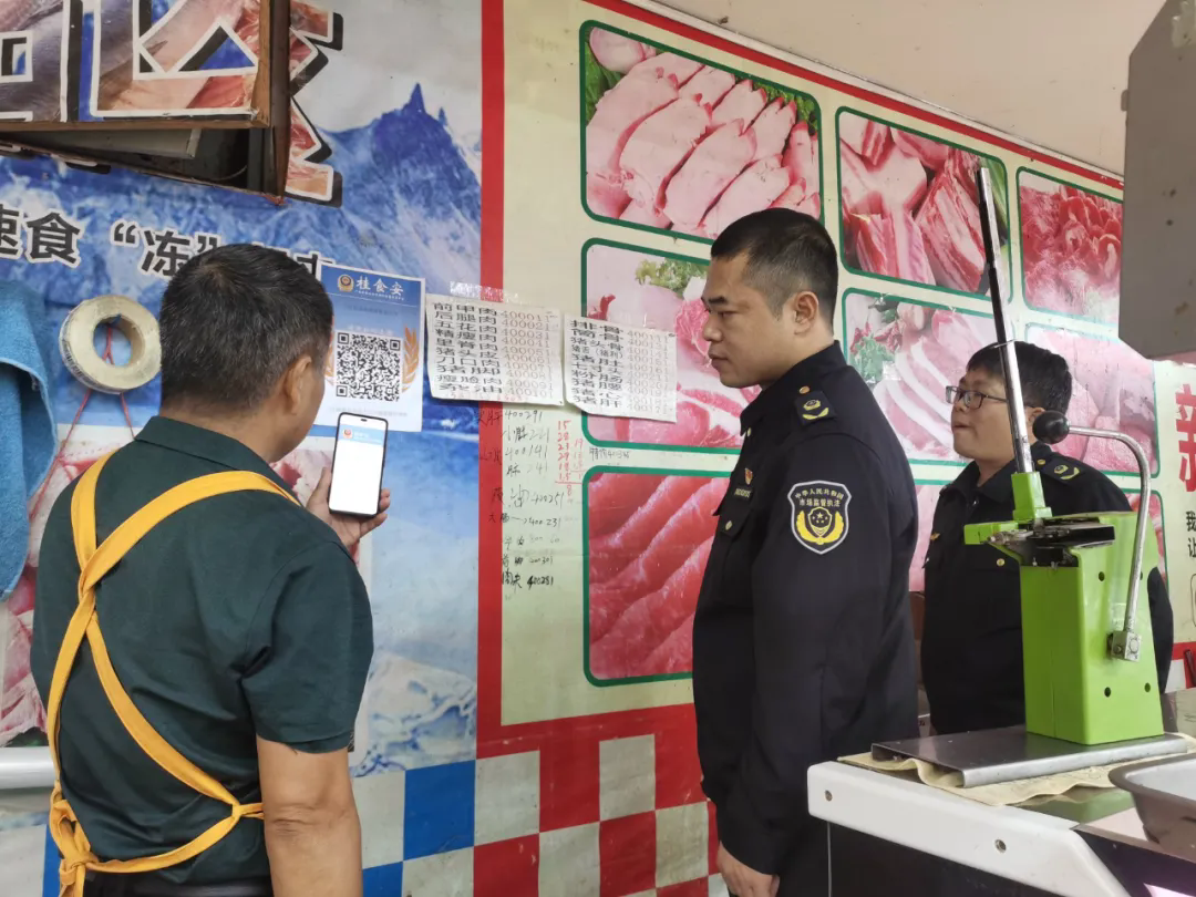 为了推行“桂食安”溯源码落实见效,近日,三江侗族自治县古宜市场监督管理所到各农贸市场、大中型食品企业、商超进行推广,手把手教经营者注册“桂食安”APP账号,指导消费者如何通过扫描“桂食安”溯源码进行查询商品信息。此次行动共指导经营主体注册“桂食安”APP账号115家,张贴“桂食安”溯源码335份,这一举动得到商家和广大群众一致好评 。