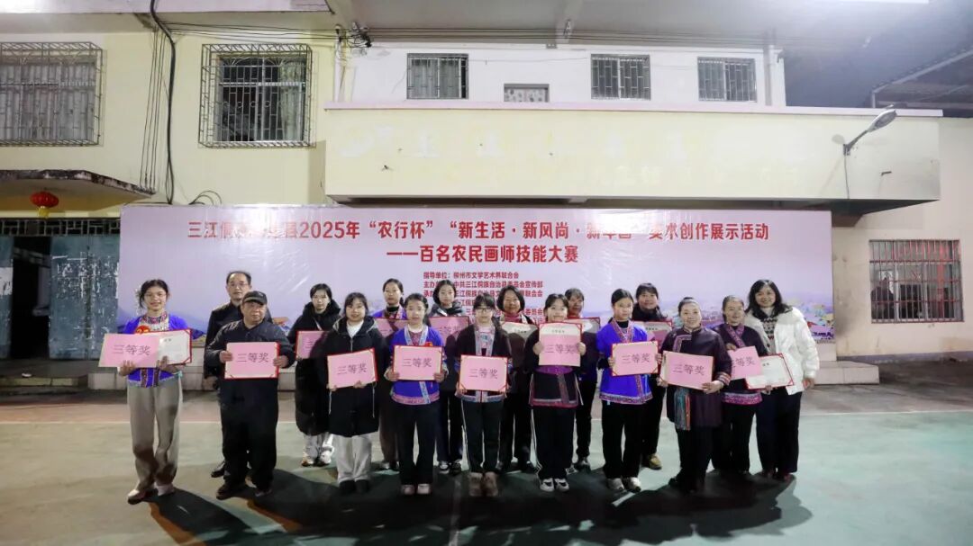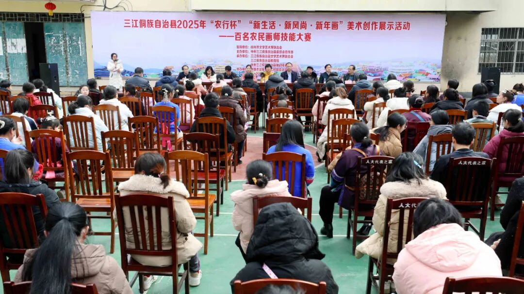据了解,本次活动以“文化惠民品年味·移风易俗树新风”为主题,通过技能大赛展示农民画师技能新风采,用画笔展现三江经济社会发展新成效,倡导健康文明新风尚。三江农民画历史悠久,起源于唐代“侗彩绘”,以农村生活为题材,用朴实的笔触和丰富的色彩表达群众对美好生活的向往与追求,具有浓郁的乡土气息和民俗特色,形成独具特色的侗画。2012年,由侗画衍生而来的三江农民画被列入自治区级非物质文化遗产代表性项目名录。