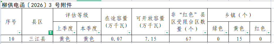 三江县2026 年第一季度分布式光伏接入电网承载能力评估结果