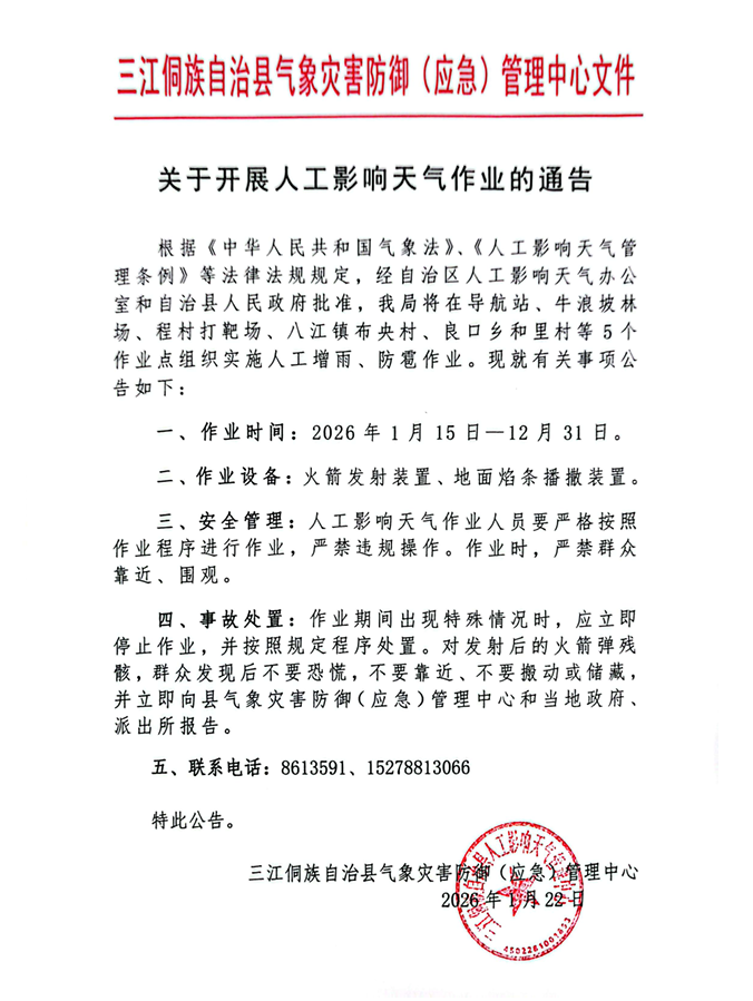 三江县气象局人工影响天气作业公示