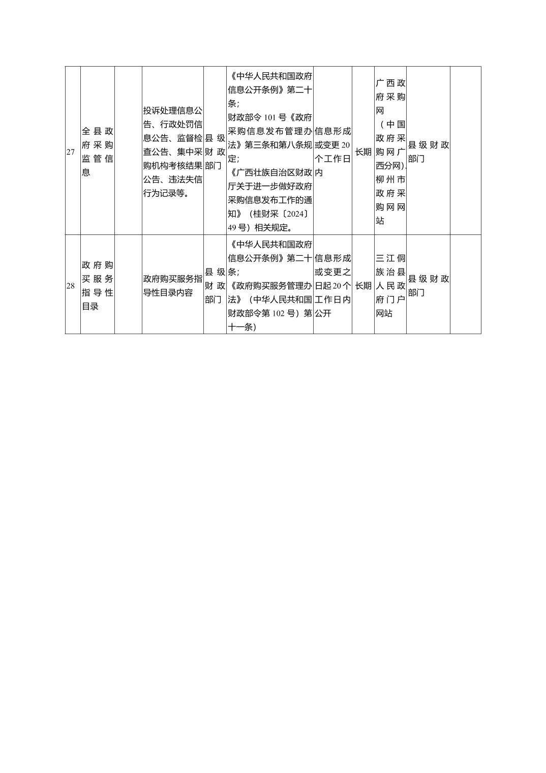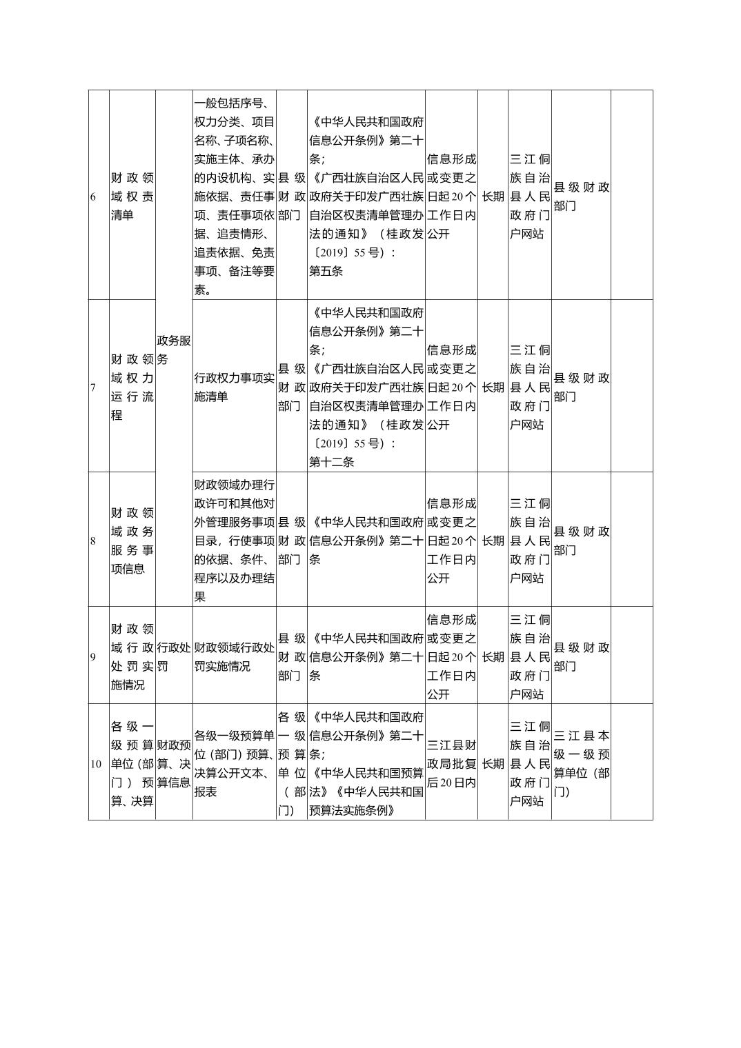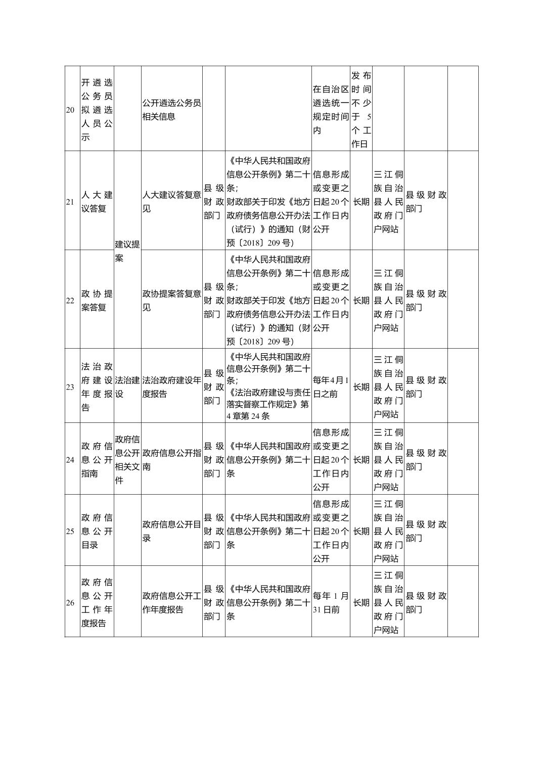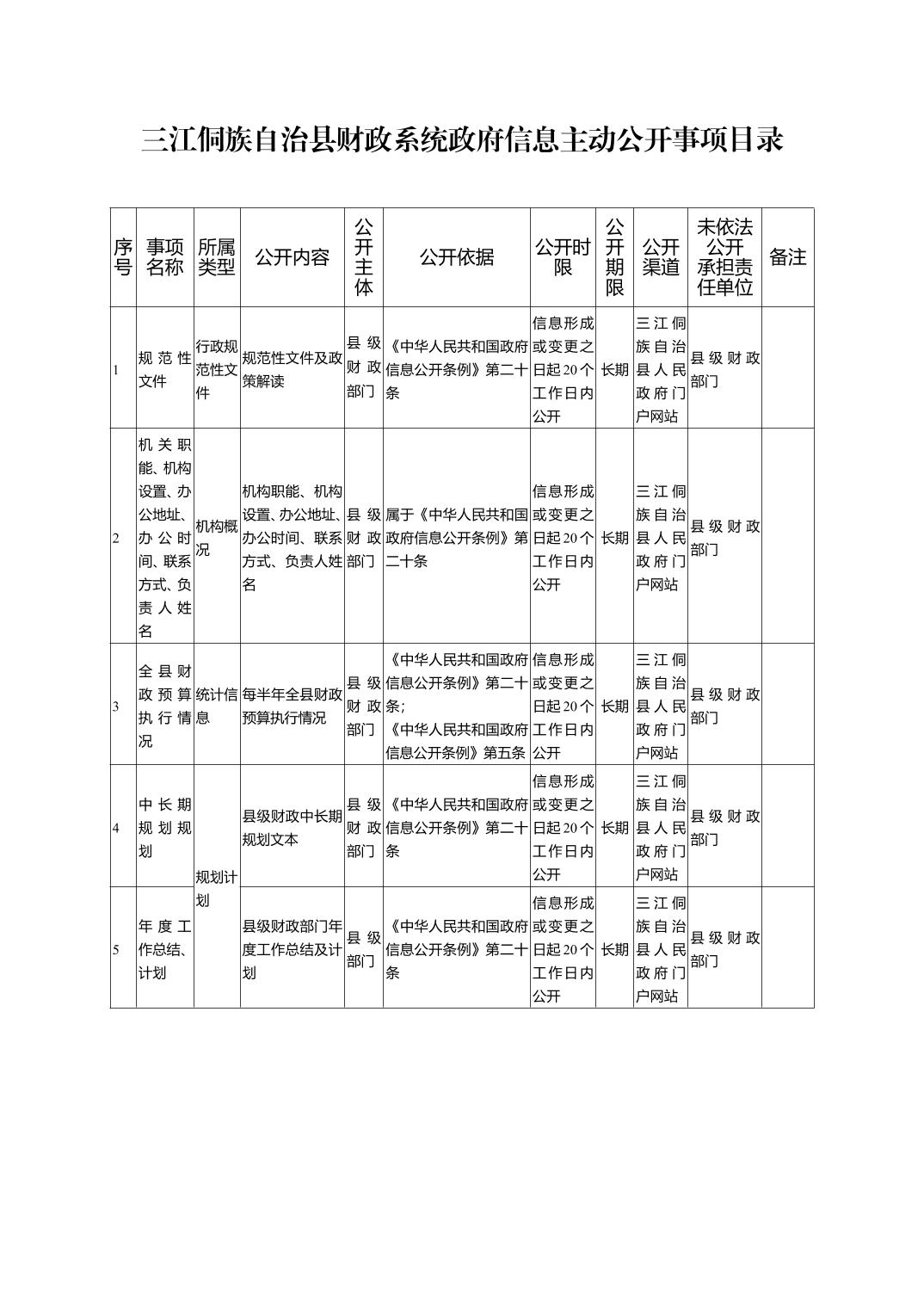 三江侗族自治县财政系统政府信息主动公开事项目录