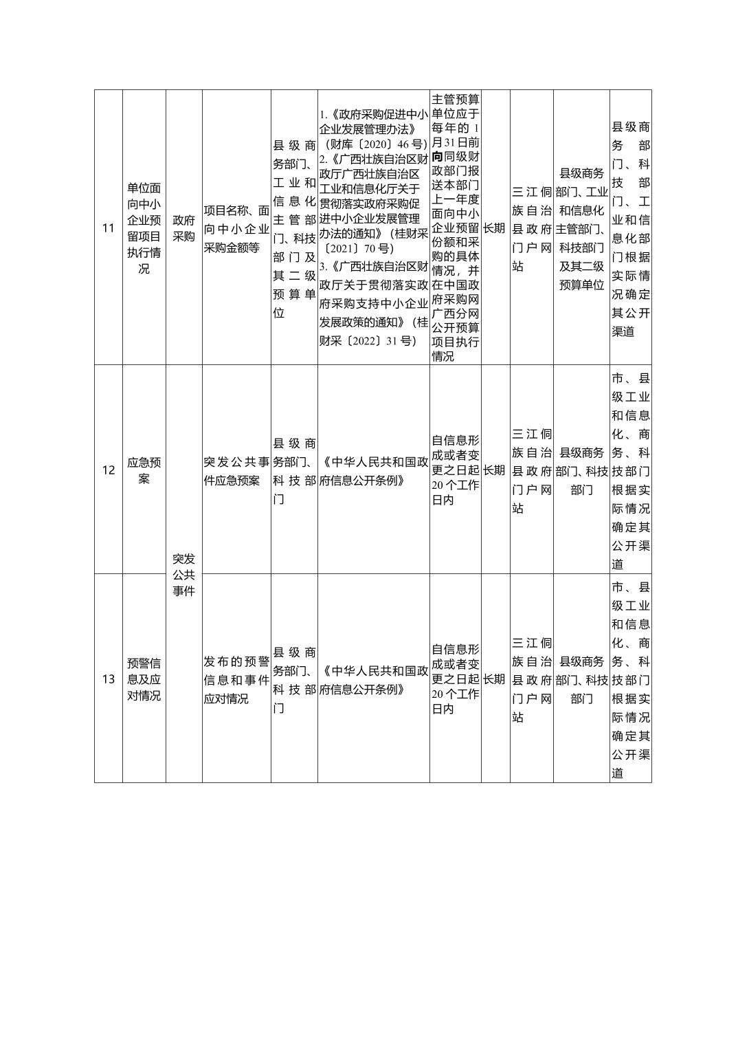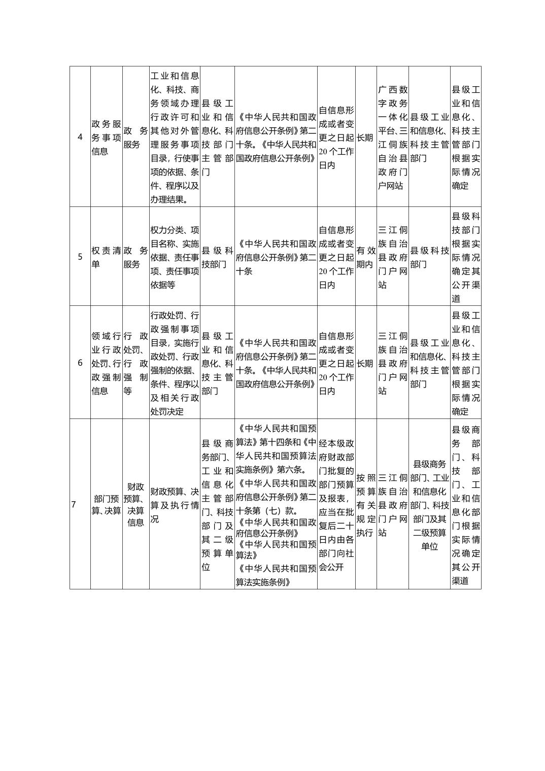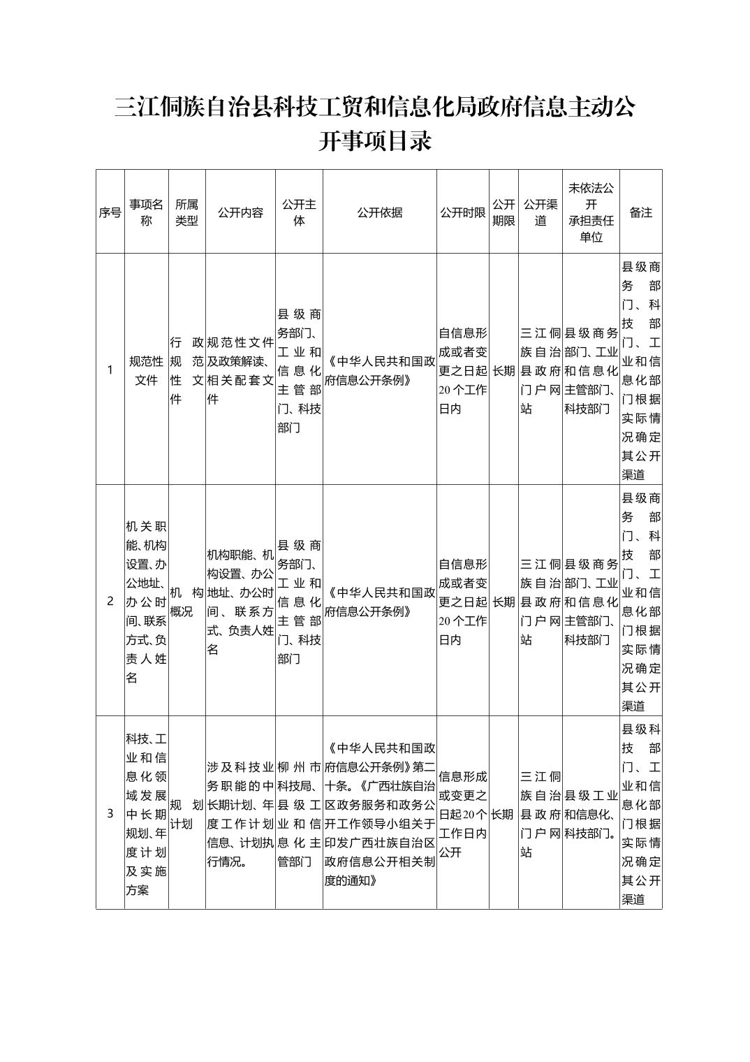 三江侗族自治县科技工贸和信息化局政府信息主动公开事项目录