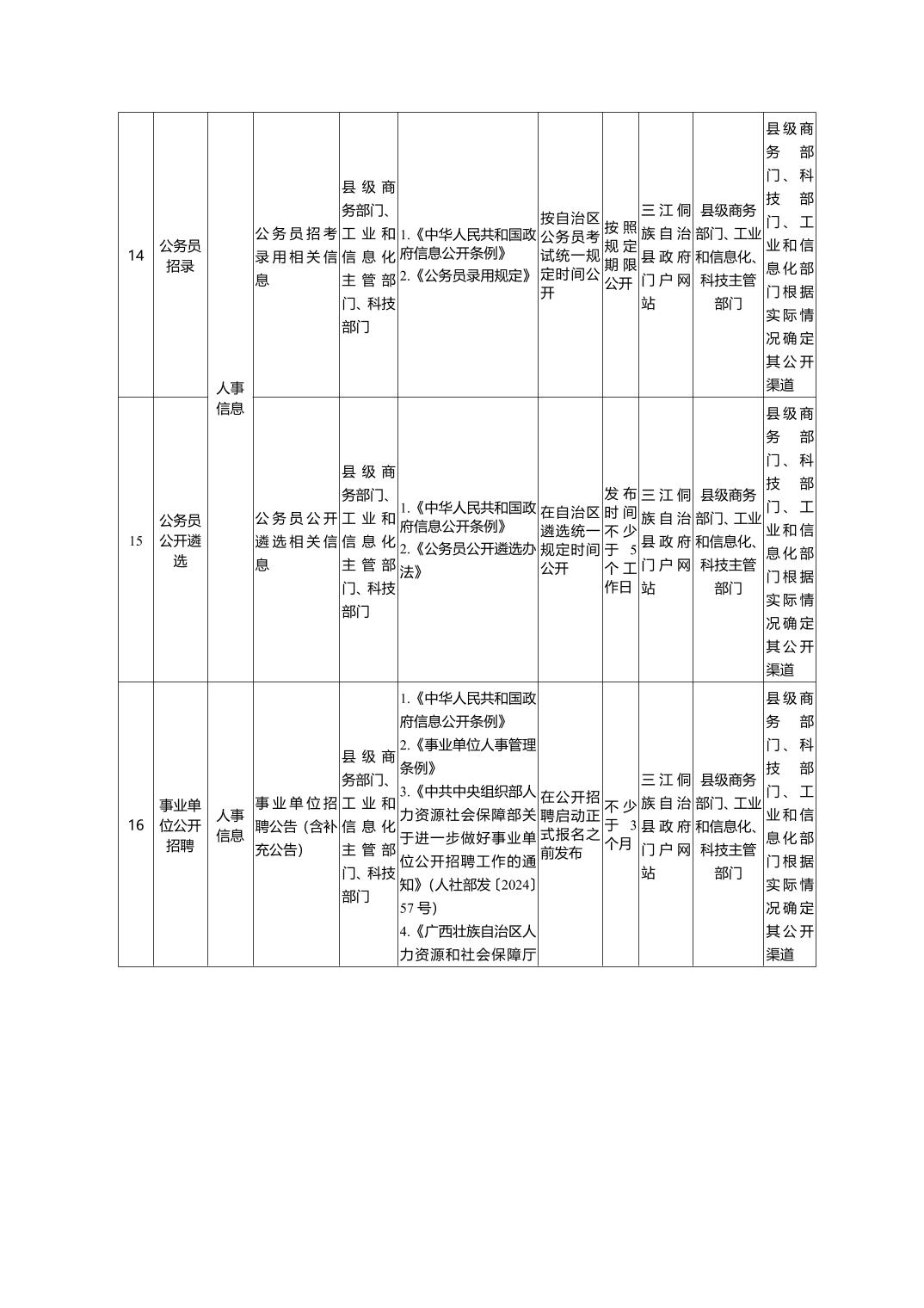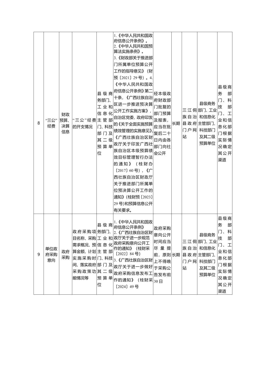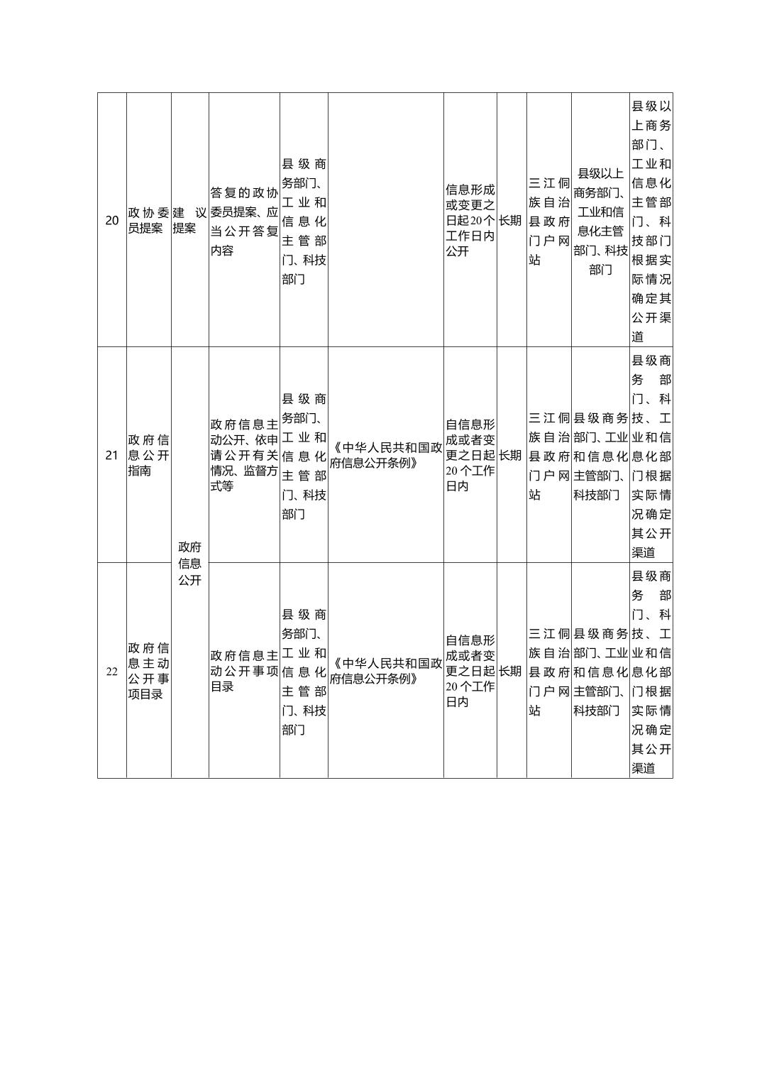 三江侗族自治县科技工贸和信息化局政府信息主动公开事项目录