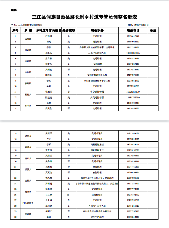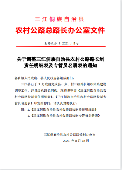 关于调整三江侗族自治县农村公路路长制责任明细表的通知(三路长[2021]5号)