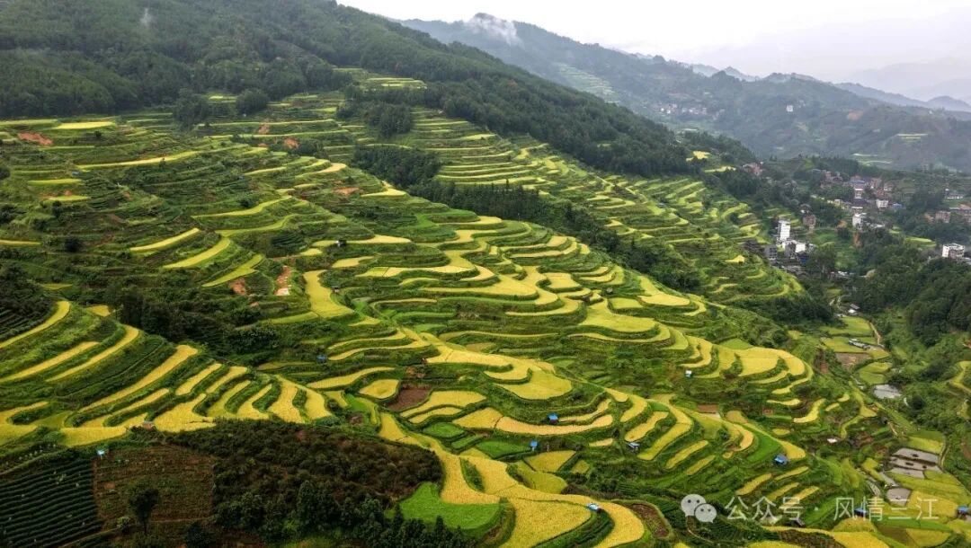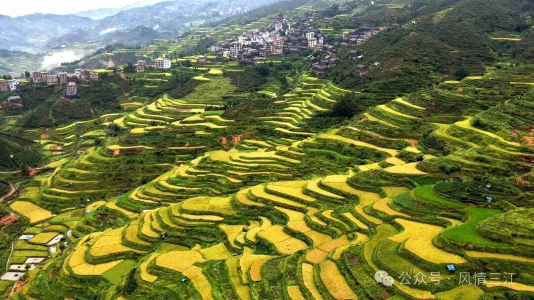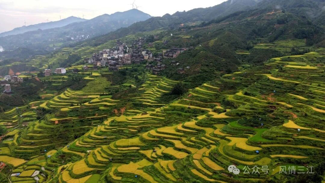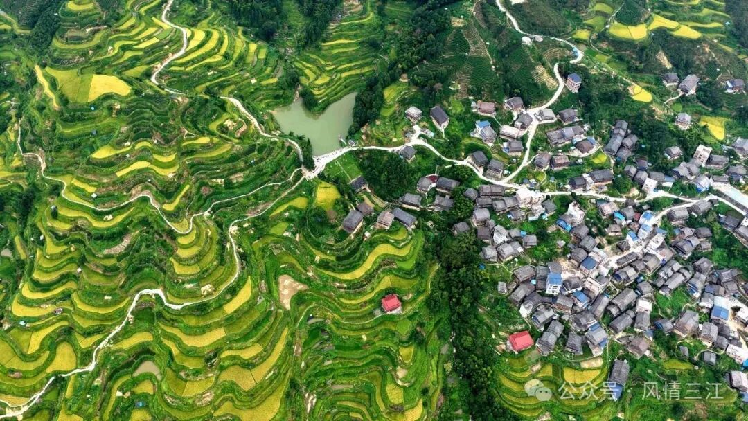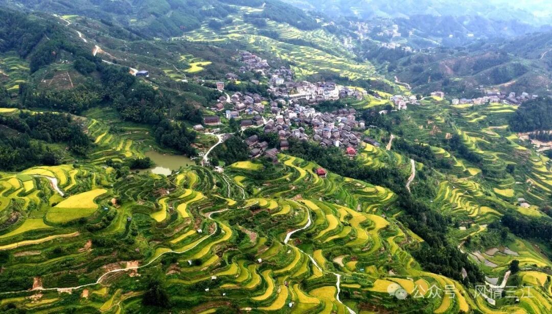 9月8日,台风“塔巴”带来短时强对流天气。风雨过后,三江侗族自治县同乐苗族乡桂书村、高武村的梯田如层层锦缎铺展山野,特色民居点缀其间,绘就一幅灵秀静谧的侗乡田园画卷。