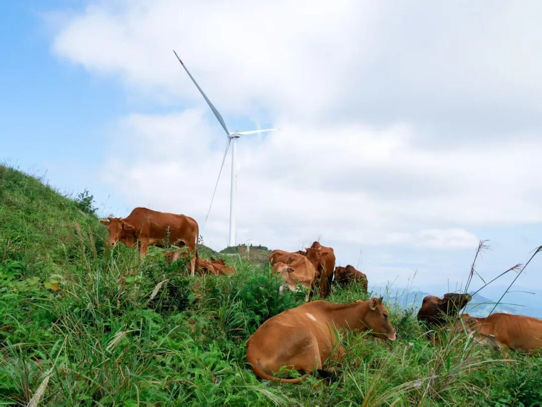 这里不仅是生态养殖的净土,更是安放心灵的诗境。漫步牧区,风车在耳畔低吟岁月的故事,牛群踏着青草绘出灵动的画卷,侗乡人民与自然共生的智慧,藏在每一缕清风、每一片新叶里。正值金秋时节,山间爽气沁人心脾,云海在脚下翻涌,伸手仿佛能触碰天际的温柔。这里是摄影爱好者的取景框,是城里人寻觅宁静的港湾,更是亲近自然的绝佳去处。