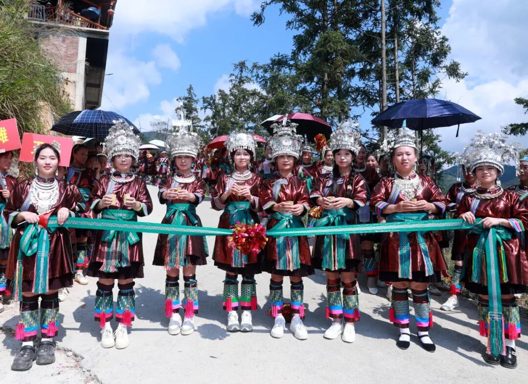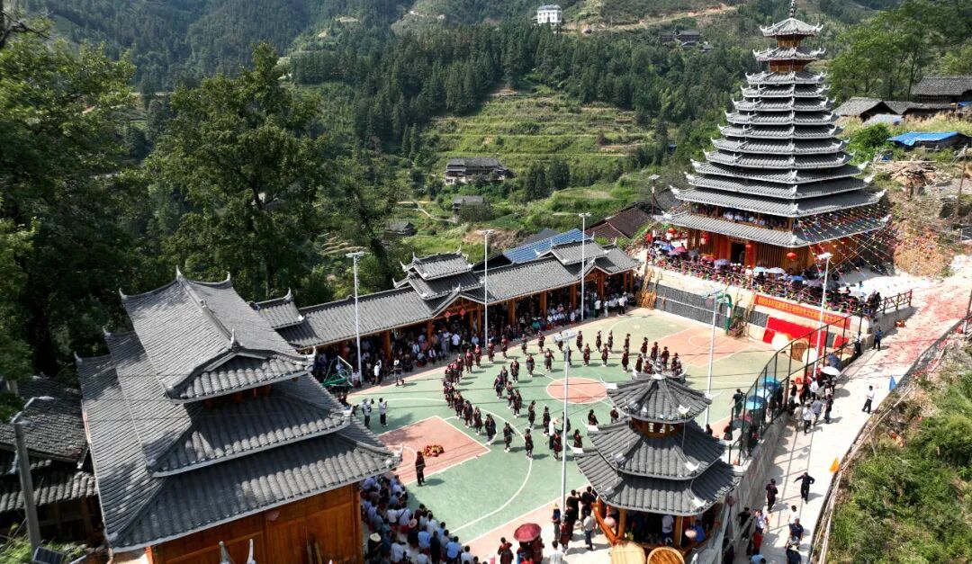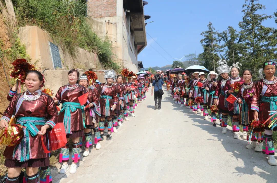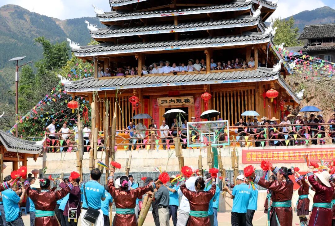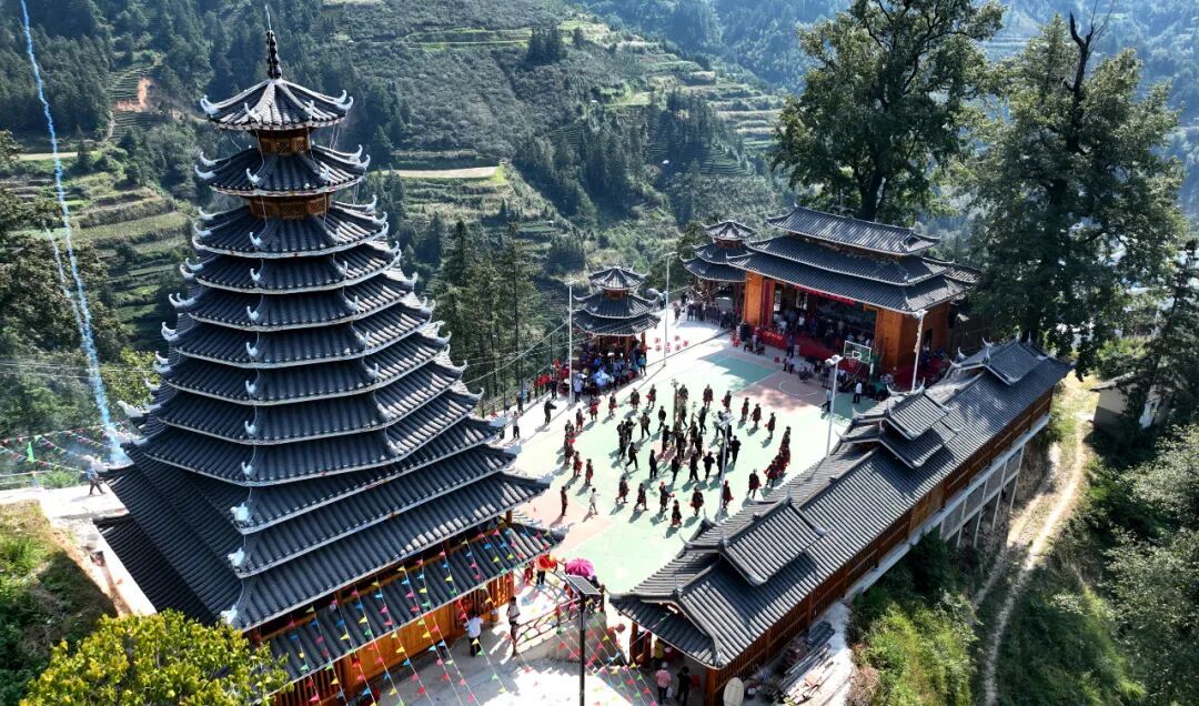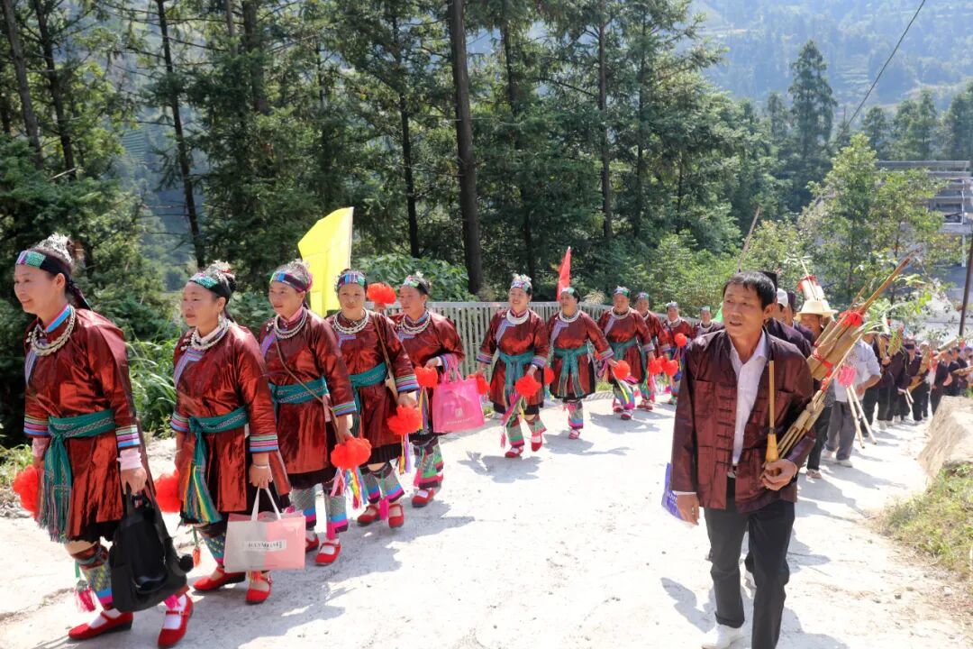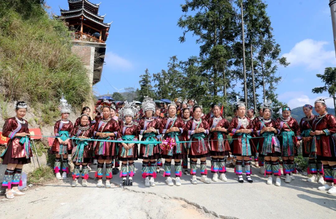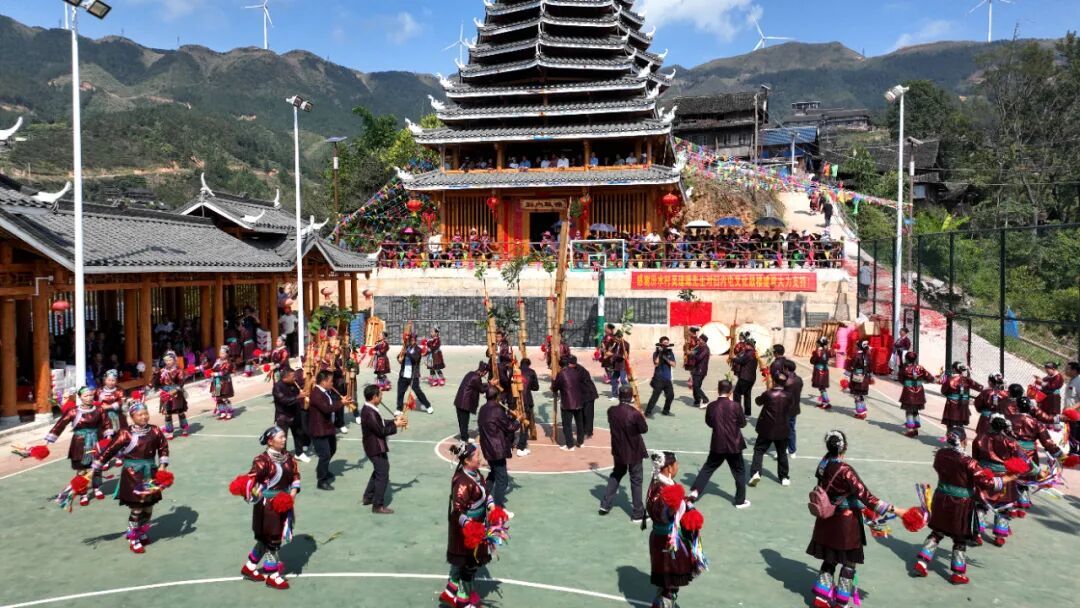 10月9日,三江侗族自治县八江镇归内村举行鼓楼落成庆典,当地群众身着民族盛装,以拦路迎宾、芦笙踩堂、百家宴、多耶等多彩民俗,喜迎四方宾朋,共庆鼓楼落成,同绘民族团结进步美好画卷。