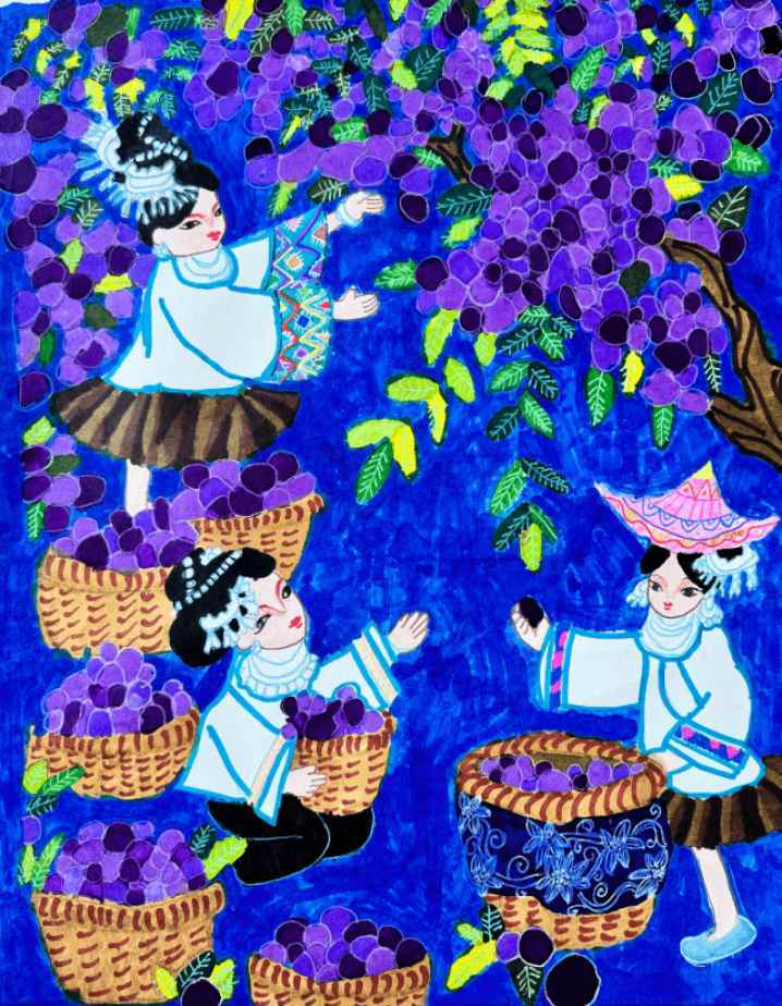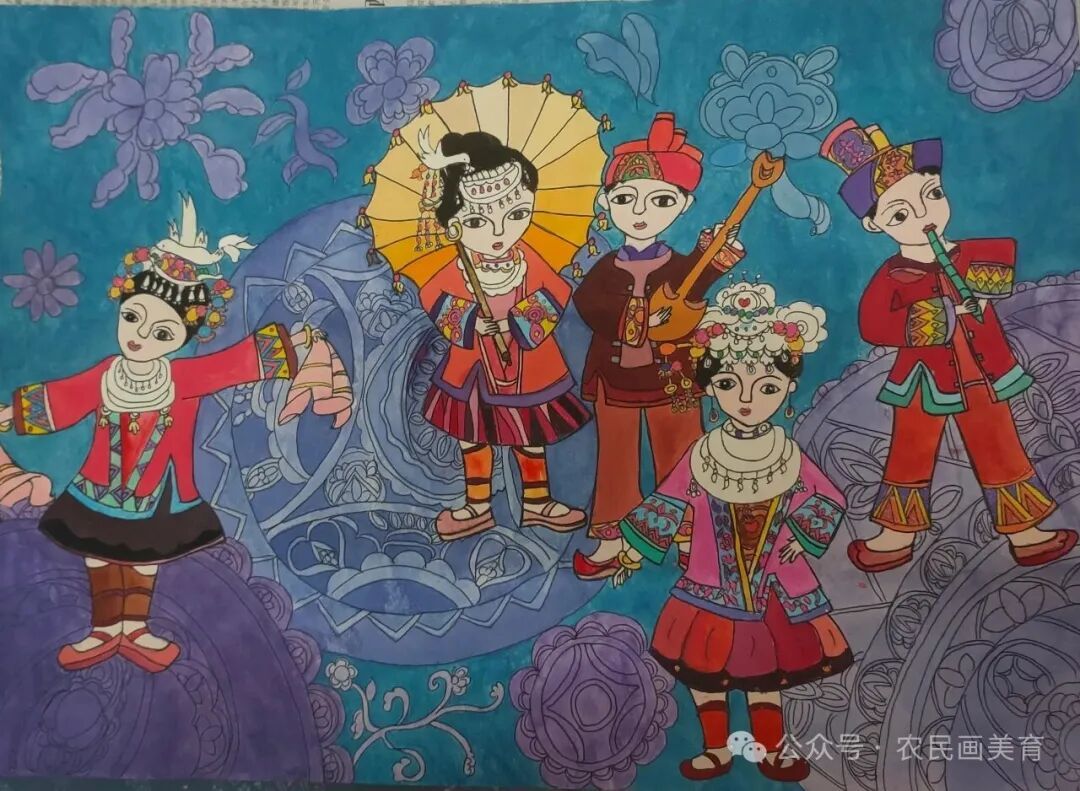 近日,由广西美术馆、广西美术家协会、广西壮族自治区群众艺术馆联合主办的“童绘壮美广西——广西少年儿童美术大赛”复评入围名单揭晓,经展览评审委员会公正、公平、严格的初评和复评,最终遴选出200件作品入围、优秀作品40件。其中,三江侗族自治县六名少年儿童创作的农民画作品成功入围,展现出浓厚的民族风情与童真艺术的完美融合!