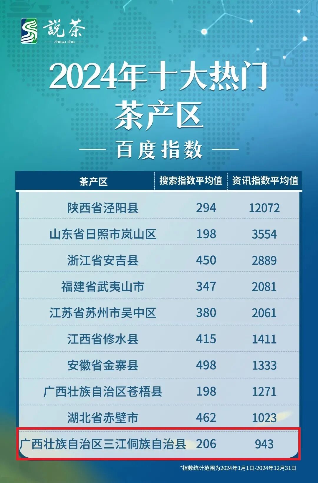 此前,“说茶”已针对茶叶区域公用品牌的全年指数做系统分析。为进一步研判茶行业发展走势,“说茶”现聚焦2024年热度前十的茶产区,看看有没有你熟悉的?